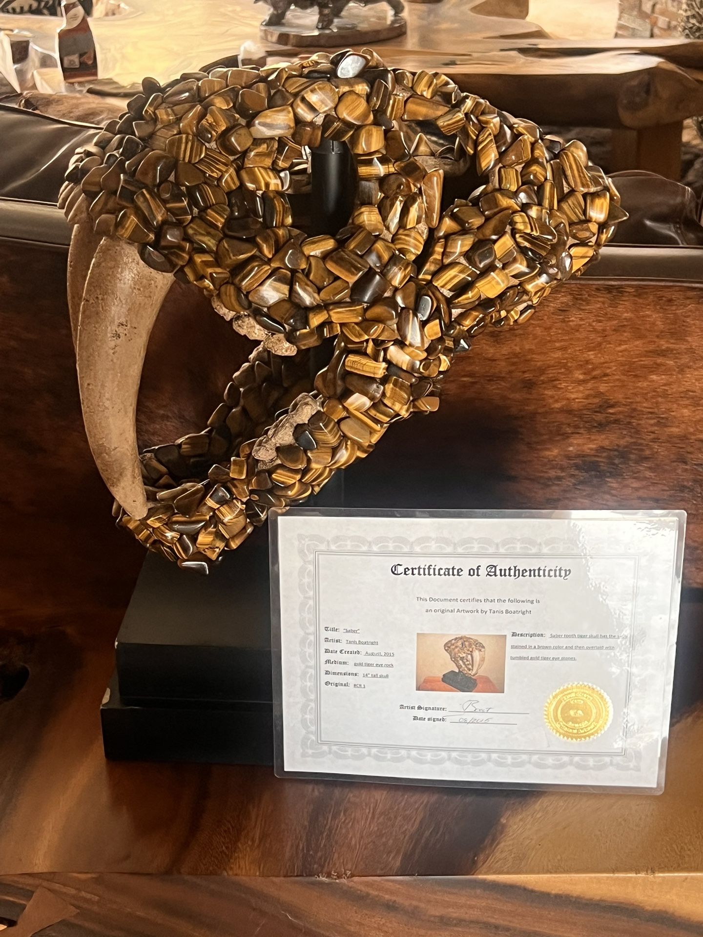 Think photos say it all! One of my top 3 favorite “OMG is it real” then another OMG when you tell and show them. Something i thought i would never get rid of. Have fun and Google what a perfect skull would cost! When they have flaws or are not museum worthy you can purchase. In the event there are fractured sibertooth tiger skulls everywhere… lol sorry. Rare to say the least. A piece you’ll look at every day! The value of this stuff is in the eye of the collectors just like art. So please know I’m selling at a fraction of what I acquired this for. Hope next person will enjoy as much as I have.