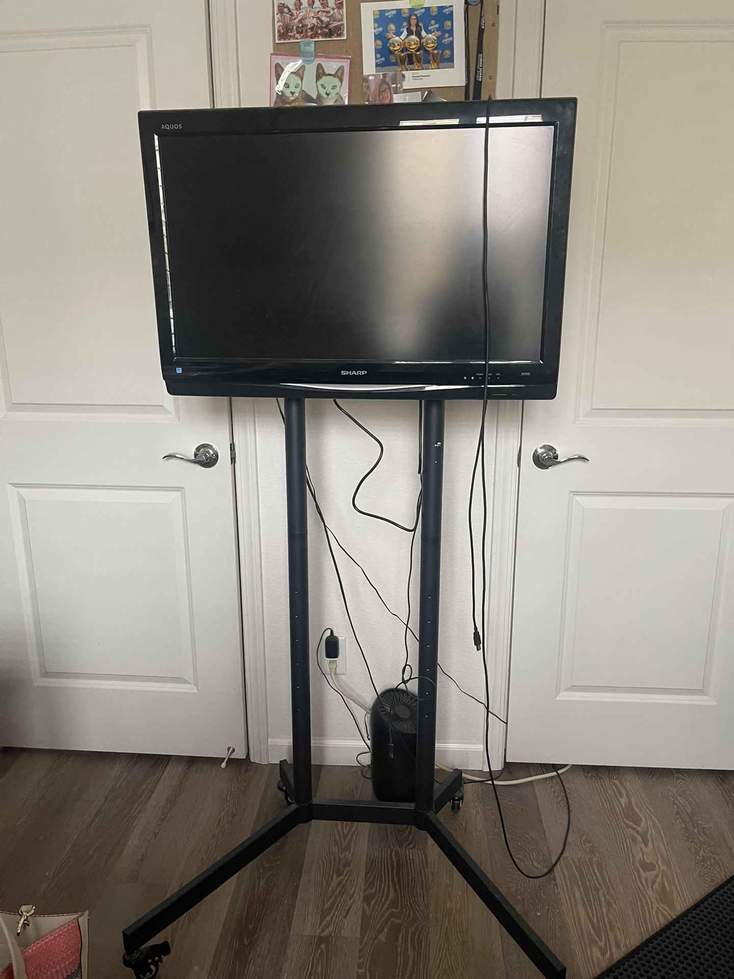Brand new rolling TV stand, never used. Paid $100, asking $50. TV not included. Perfect for home, office, or conference room use. Easy to move and great for saving space. First come, first serve. Not able to hold. Serious inquiries only. Address will be provided once you’re on your way.