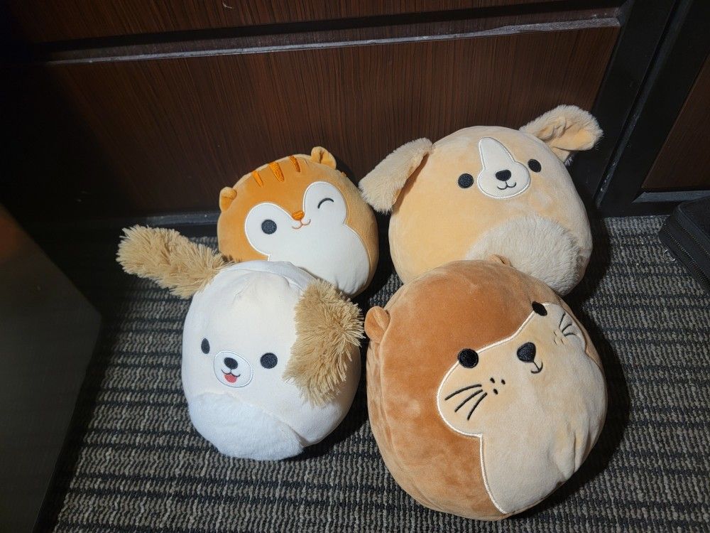 Meggie the Dog, Stevon the Puppy Dog, Joanne the Sea Otter, and Quigley the Squirrel plushie. $8 each or $25 for all.