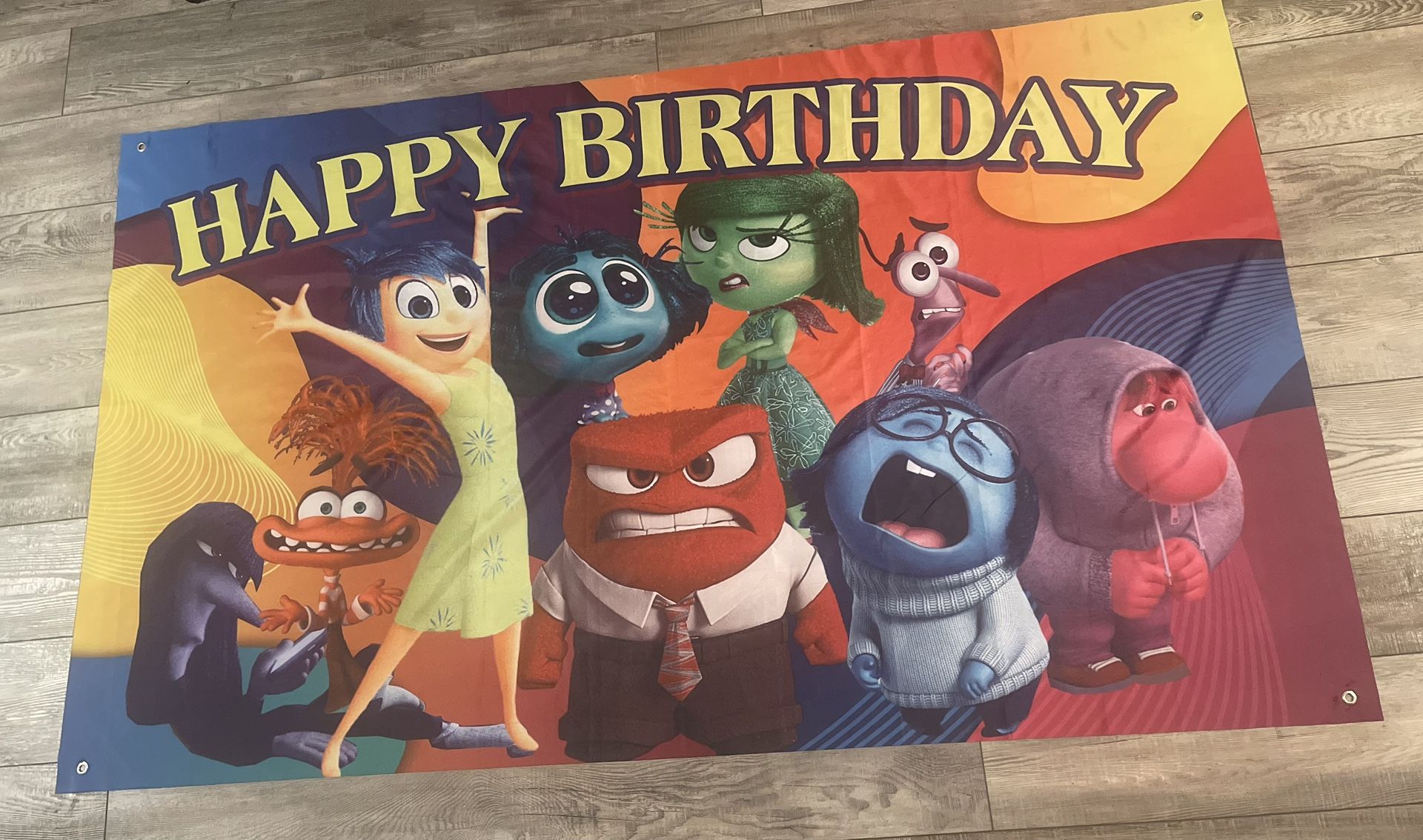 Table cloth, Backdrop,Banner,Small banner, balloons, cake topper, cup cakes toppers. 9 guests