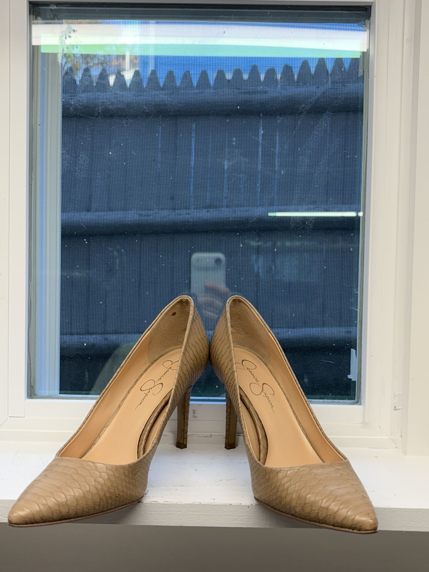 Beautiful pair of Jessica Simpson snakeskin-embossed high heels in size 9.5M. These come in a neutral beige/tan shade that works with everything — per