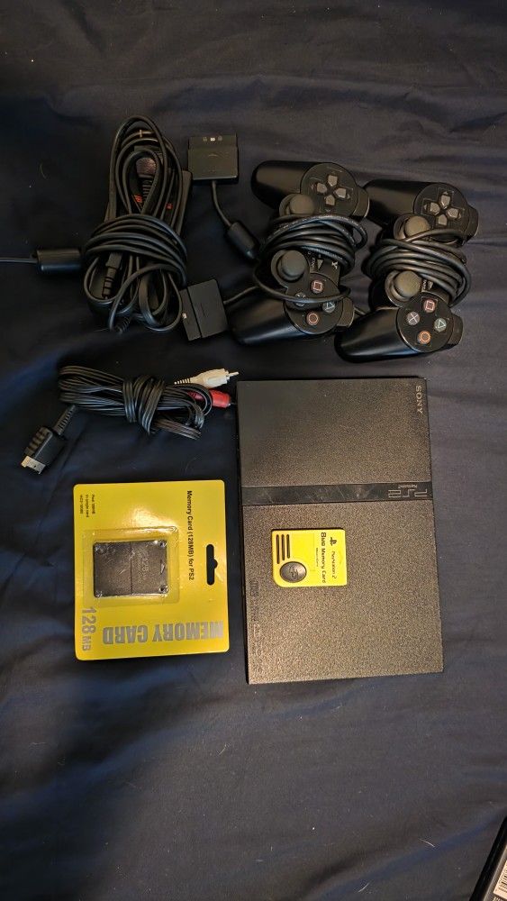 *Moving to Burnet, grab it while I'm still in Austin* PS2 slim with 2 controllers, 2 memory cards (8mb and 128mb *sealed*) as well as 14 games + 1 demo. Most games have normal wear some heavier than others but all have been tested through the tutorial. Both controllers have been tested and the 8mb memory card was tested and wiped. Overall great running system, beat kingdom hears 1, 1.5 and half of 2 so it still have some life in it.