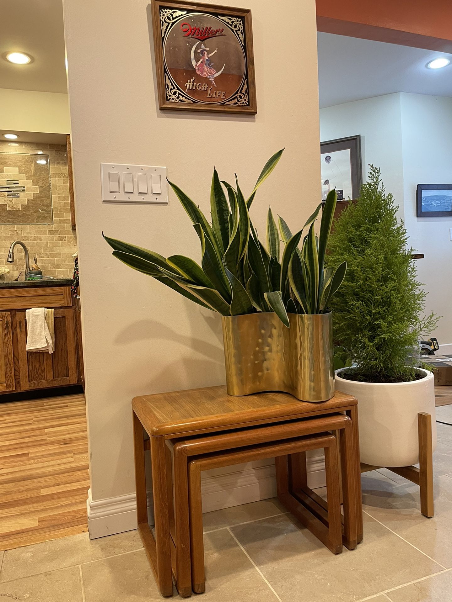 Solid Teak Nesting Tables Set Of Three + removable Tray. Such a cool set, very unusual to see with the largest table having a removable top that functions as a separate matching tray. Dimensions of largest table 24.5” wide, 15” depth, 17.5” height Matches a hutch / Credenza set and dining room table that I also have listed - check out my other listings Danish Denmark mid century modern design Vintage antique 1960 / 1950 Amazing condition $250 OBO