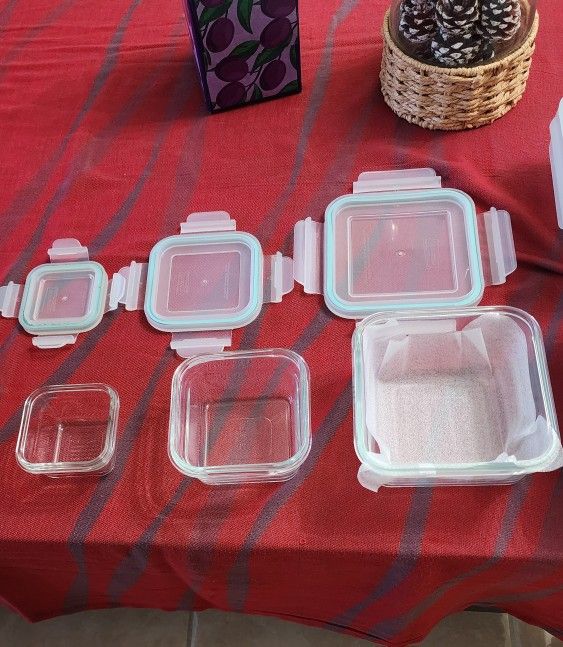 5 sets. Barely used, some others never used. Close tightly, fit inside each other to save space, microwave safe without cover, dishwasher safe with lids on top rack. Oven and freezer safe. Please don't ask me about availability because I will post it sold when I sell them.