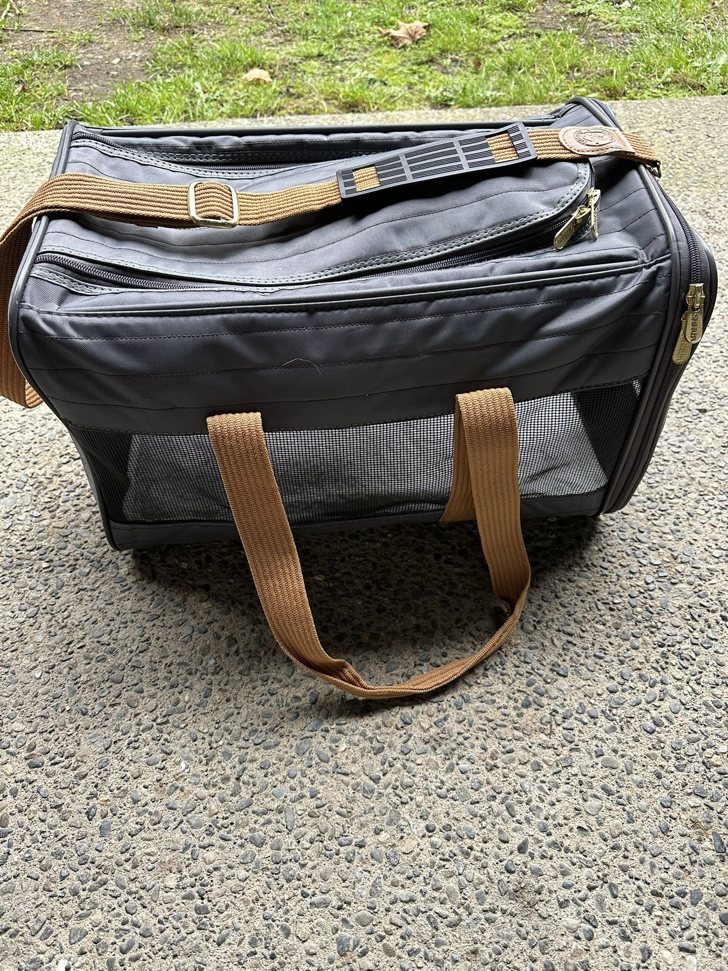 Airline approved, used with Alaska, Delta and JetBlue with no issues. 15lb dog fit in perfectly, loved that it has 3 panels to check on doggo. Comes with shoulder strap and liner which can be washed. Brand: Sherpa Retail price for a new one: $84.99