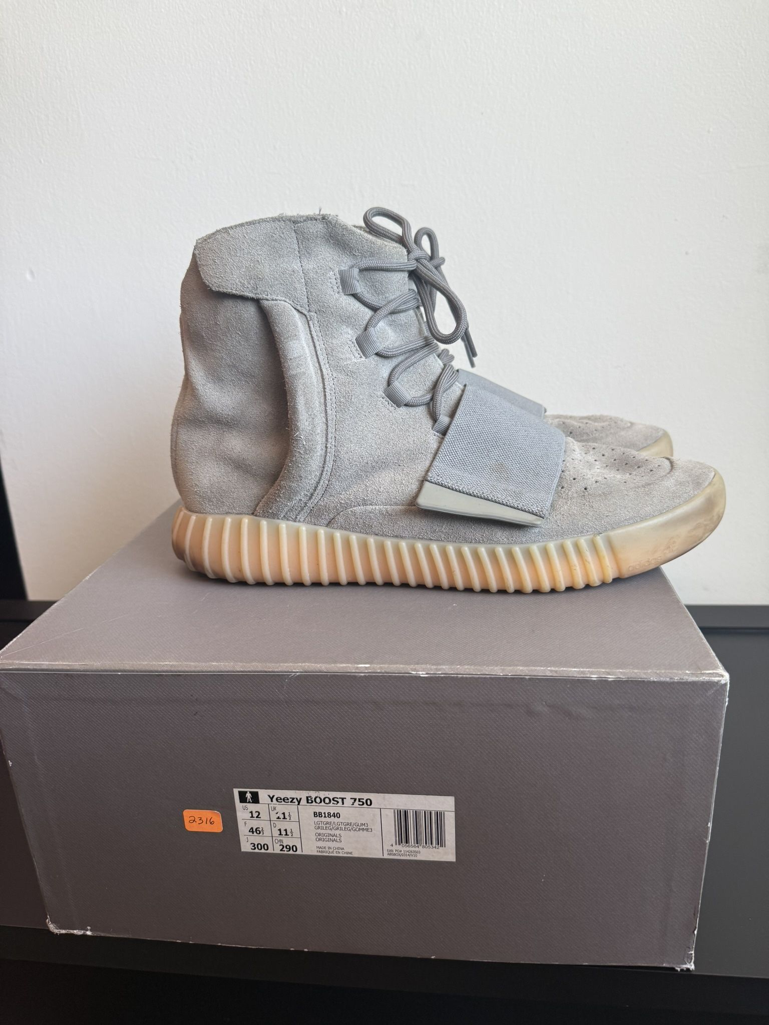 Step up your sneaker game with one of the most coveted Yeezy releases—the Yeezy Boost 750 Light Grey/Gum Glow. Known for its futuristic high-top silhouette, premium suede construction, and glow-in-the-dark gum sole, this pair is a grail for collectors and Yeezy fans alike. Details: • Model: Adidas Yeezy Boost 750 • Colorway: Light Grey / Gum Glow • Size: US 12 / EU 46 / UK 11 • Condition: Gently used – see photos for exact condition • Style Code: BB1840 • Release Year: 2016 • Includes: Original box Features: • Premium suede upper with velcro midfoot strap • Full-length Boost cushioning for comfort • Perforated toe box for ventilation • Gum outsole that glows in the dark 🔥 Collector’s Note: The gum outsole glows under low-light conditions, making these a standout both day and night.