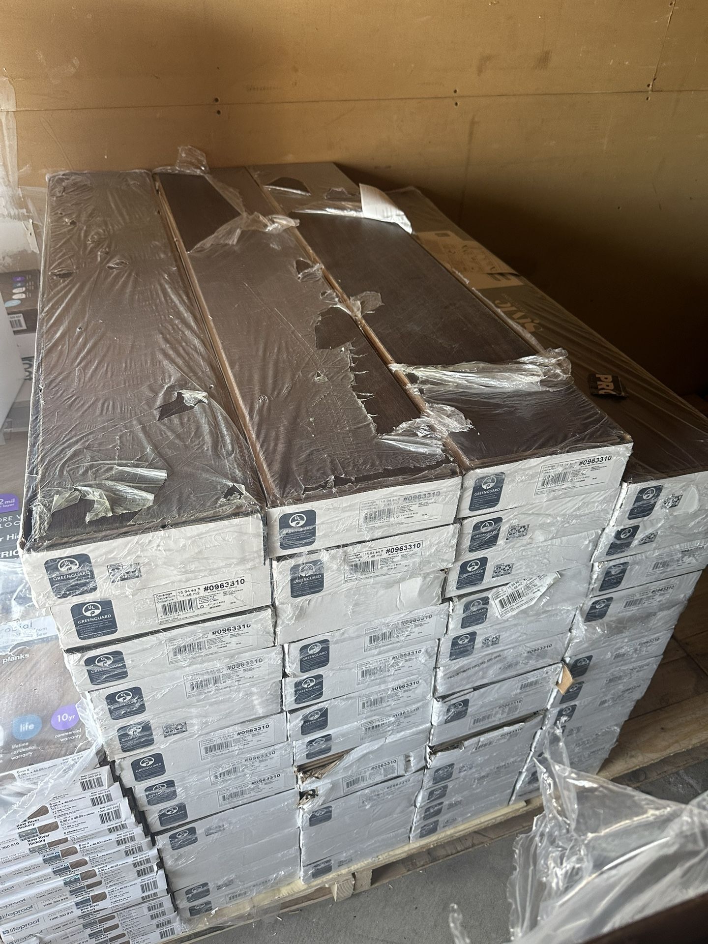 - 100 Cases Available - Sq.ft./case - 15.94/case - Home Depot Price Per Case (Before Tax): 23.66 - My Price: $15/case - 12MM THICKNESS Style Selections / American Heritage Shady Brook Hickory 12MM Wood Plank Laminate Flooring Luxury vinyl plank flooring hardwood vinyl etc laminate