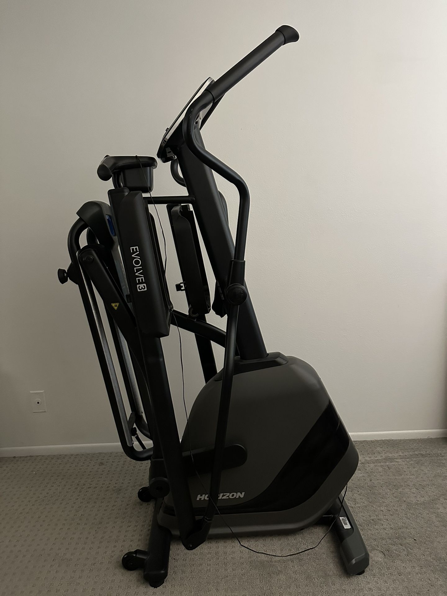 Like new folding elliptical. Barely used with minor cosmetic marks. Works great but not enough room in our space for it.