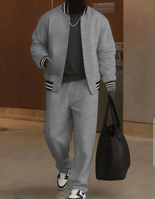 Striped Trim Jacket Pants Set
