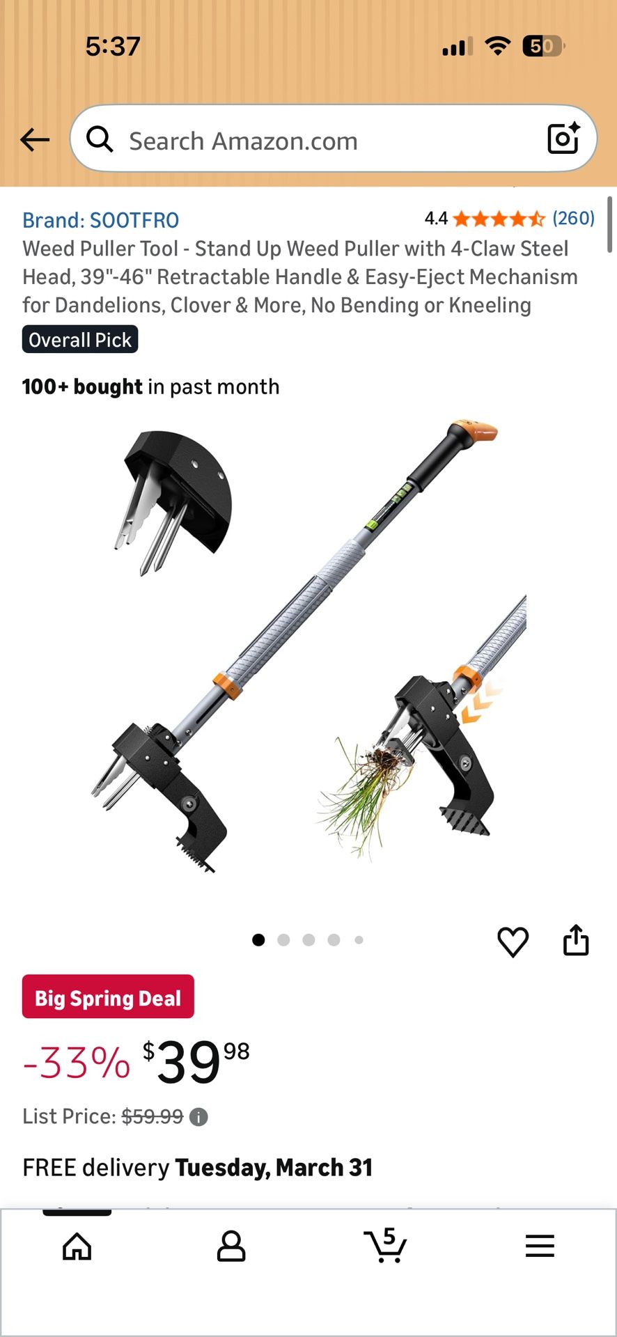 Durable Four-Claw Steel Construction: This weeding tool, a must-have in your gardening supplies, is designed with a robust 4-claw steel structure. It firmly grips weed roots and offers exceptional durability and strength. The sharp steel claws penetrate deep into the soil, ensuring even the most stubborn roots are effortlessly removed for permanent weed removal. Adjustable Handle and Ergonomic Design: This weeder tool features a telescoping handle adjustable from 39 to 46 inches, making it easy to use for both men and women. With no need to bend or kneel, it reduces strain on your back and knees, providing a comfortable and efficient weeding experience. Effortless Weed Ejection: After gripping and uprooting weeds, the innovative push mechanism of this puller tool stand up heavy duty allows you to easily eject weeds and soil, keeping your hands clean and making the process quick and hassle-free. This weed remover tool eliminates the need to bend over to manually remove weeds, saving you time and effort! Effortless, Efficient, and Versatile: The offset handle design of this dandelion weed puller tool not only enhances comfort but also provides better leverage, making weeding easier while protecting your wrists. This detachable weed puller is the perfect gardening tools for removing tough weeds like dandelions, thistles, and crabgrass from gardens, lawns, patios, and driveways.