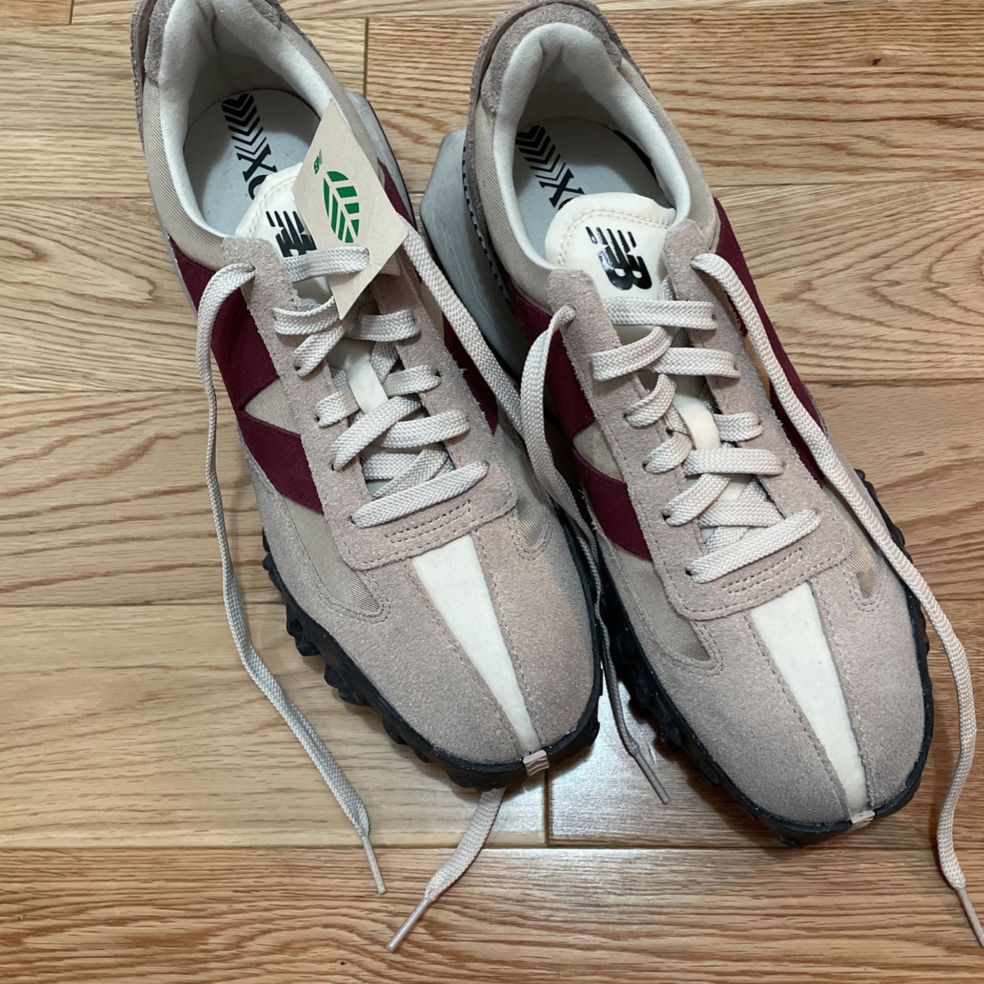 Brand New men’s New Balance Size 10. Vintage style beige with burgundy logo.