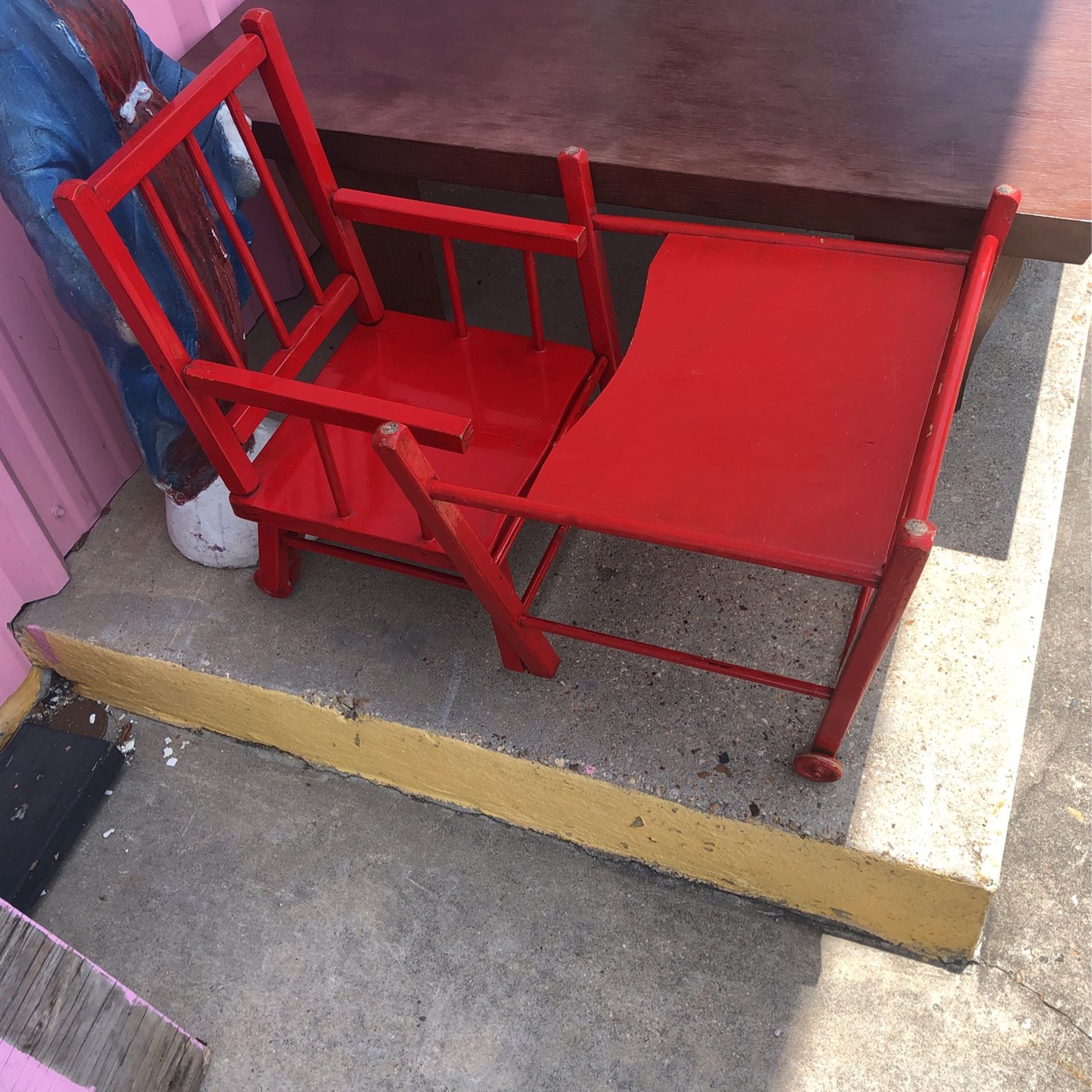 This high chair transforms into a desk and chair for a toddler. This is a very unique piece With multiple functions . This piece of furniture has been custom-made and is Unique