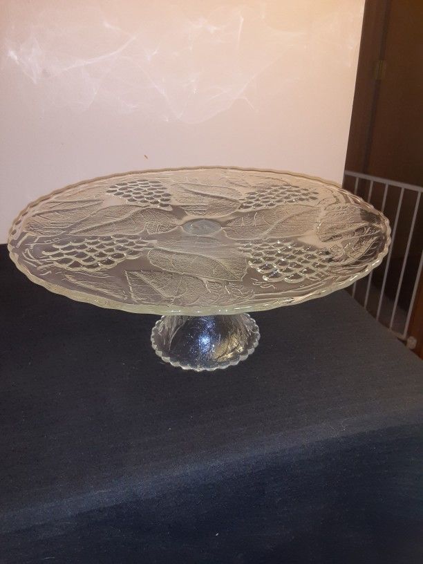 Beautiful Glass cake Stand, Grape Leaf design