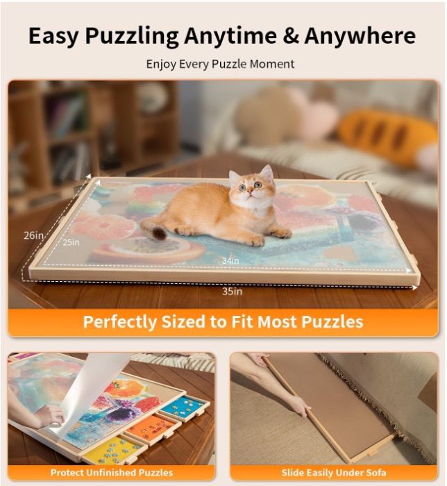 34" x 25" 1500 Piece Puzzle Board Pro, with 6 Drawers & Cover, 34" x 25", Sort-Wise Colorful Felt Drawers, Wooden Jigsaw Puzzle Board Brand New in Box, Never Used Pickup in North Phoenix near 52nd ST and Bell Road
