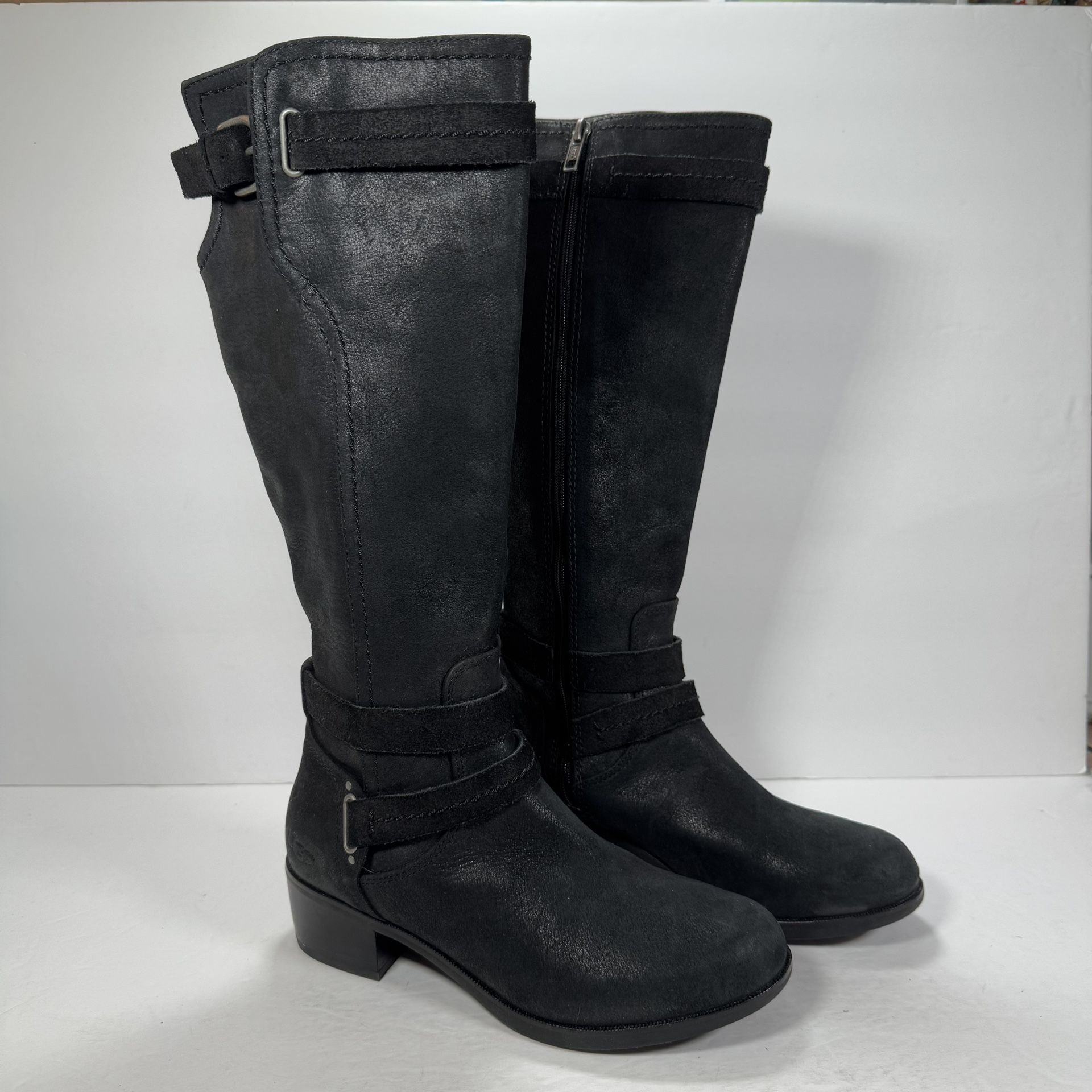 UGG Darcie Tall Knee High Black Leather Moto Riding Boots Women Size 6