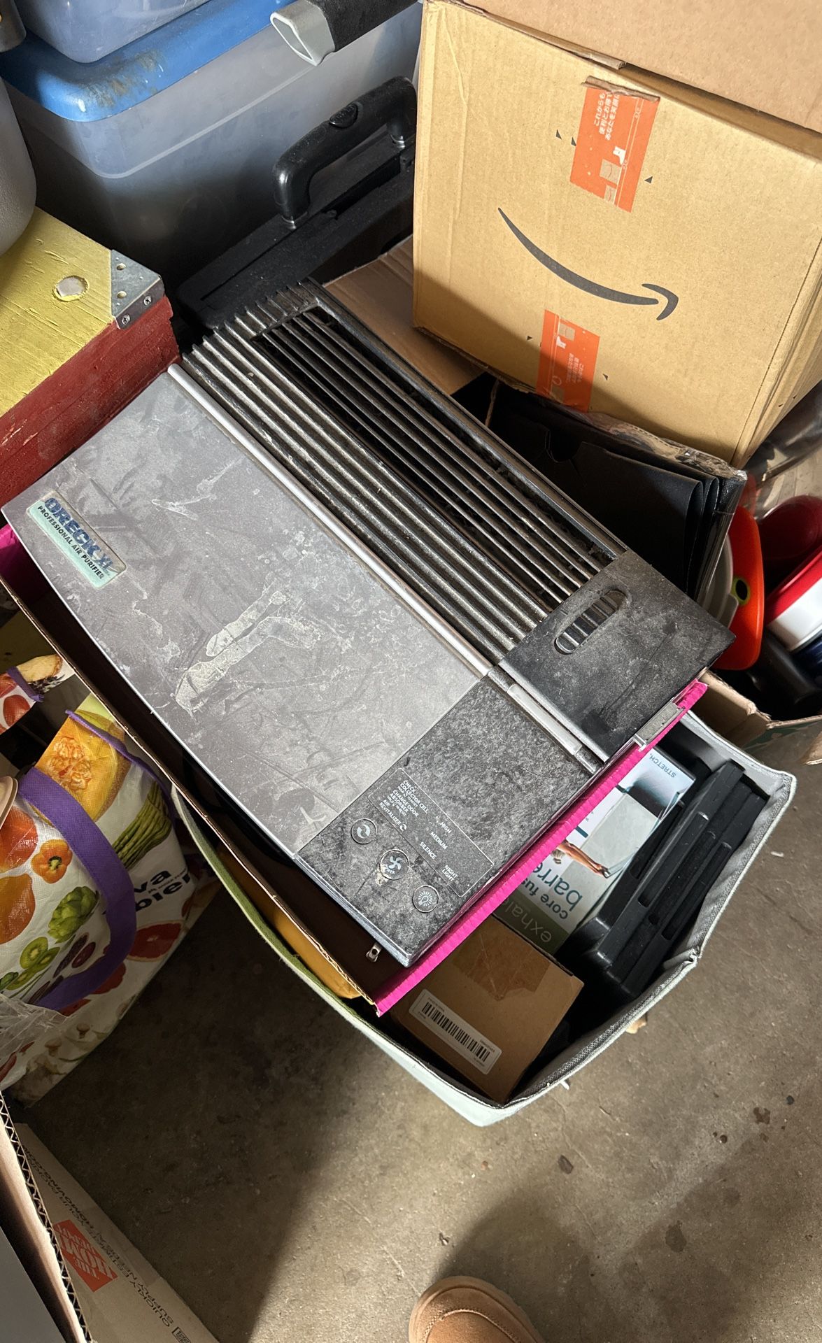 Been in garage, good working but need good clean and new black filter. The front filters can be cleaned, it is reusable washable.