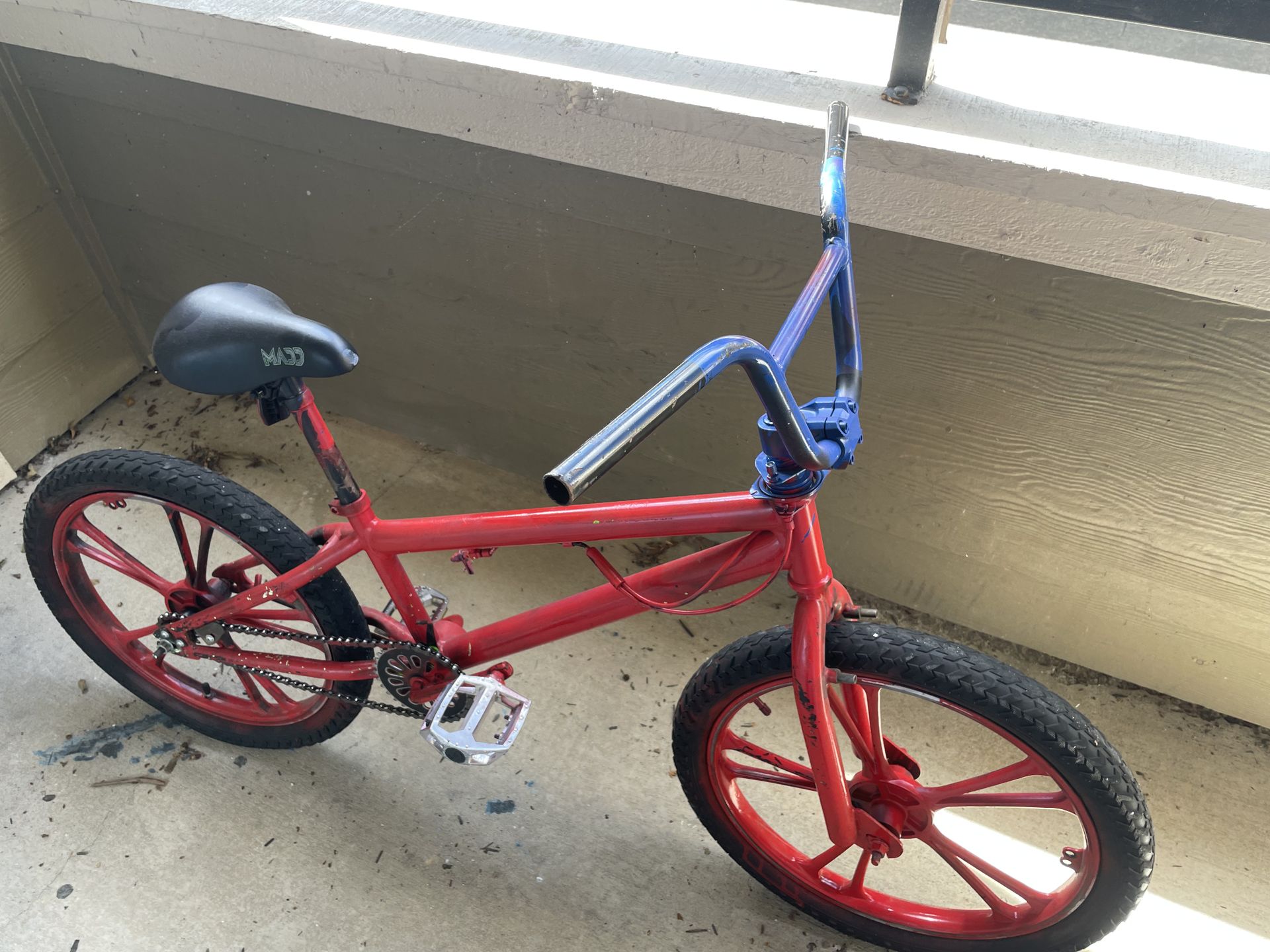The BMX bike has no brakes no wires hanging out both of the tires hold air and the bike is spray painted blue and red but overall everything is perfectly fine on the bike the lowest I will go is 20