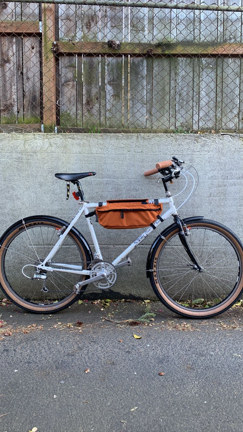 Just built up this bad boy and now I have too many bikes. Fully set up for summer joy rides, commuting and whatnot. 7spd rear 3x up front. Shifts clean. Shimano Deore Cushy new maxxis 2.0 tires Fenders Brand new brake pads, cables and chain. He’s a handsome fellow.