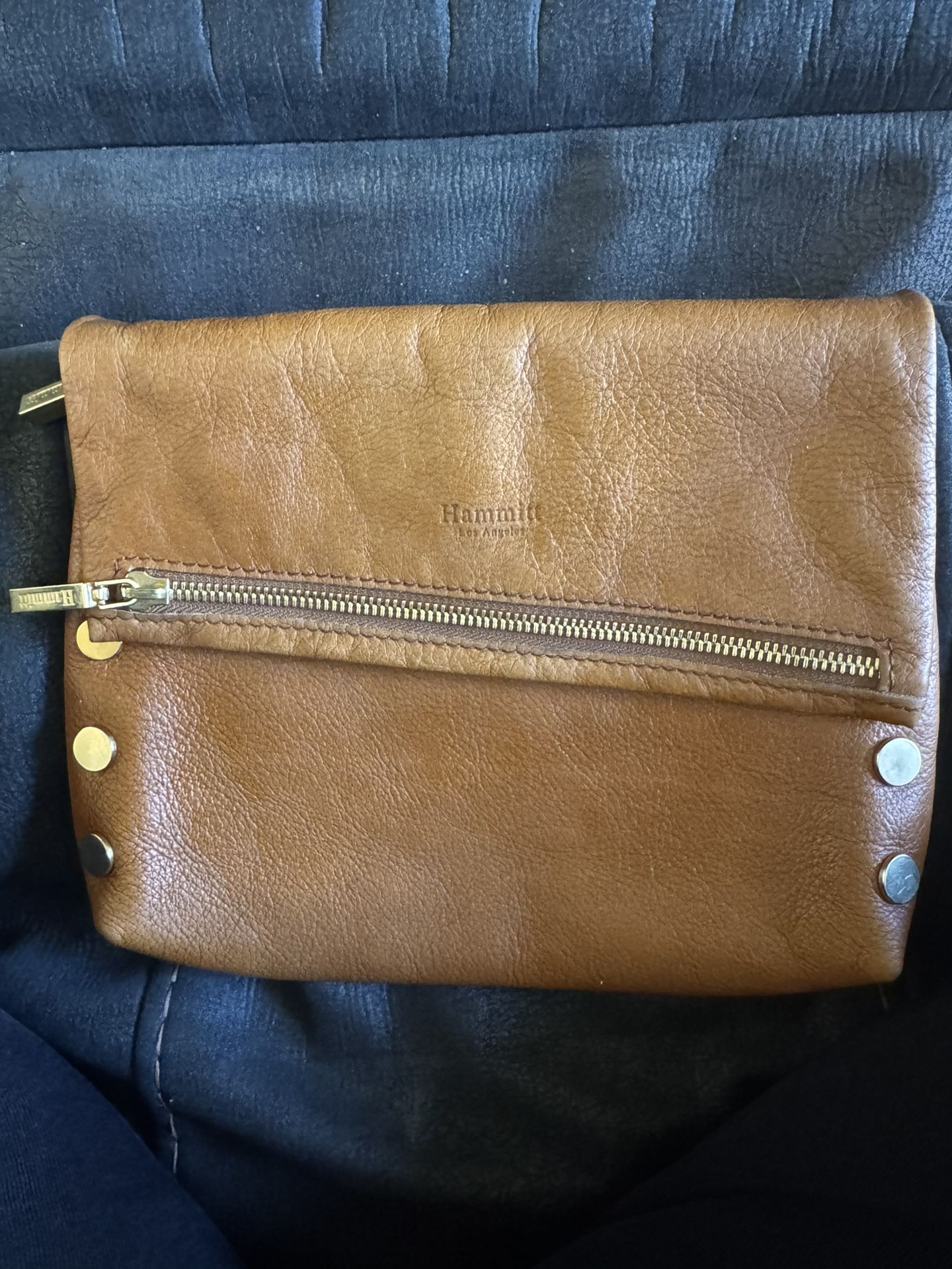 Hammitt VIP Medium sized bag, purse, clutch, handbag. Does not come with shoulder strap. Pebbled leather. Good gently used condition. Inside (looks like red suede), a bit dirty, can be cleaned, see pics. Warm brown color.
