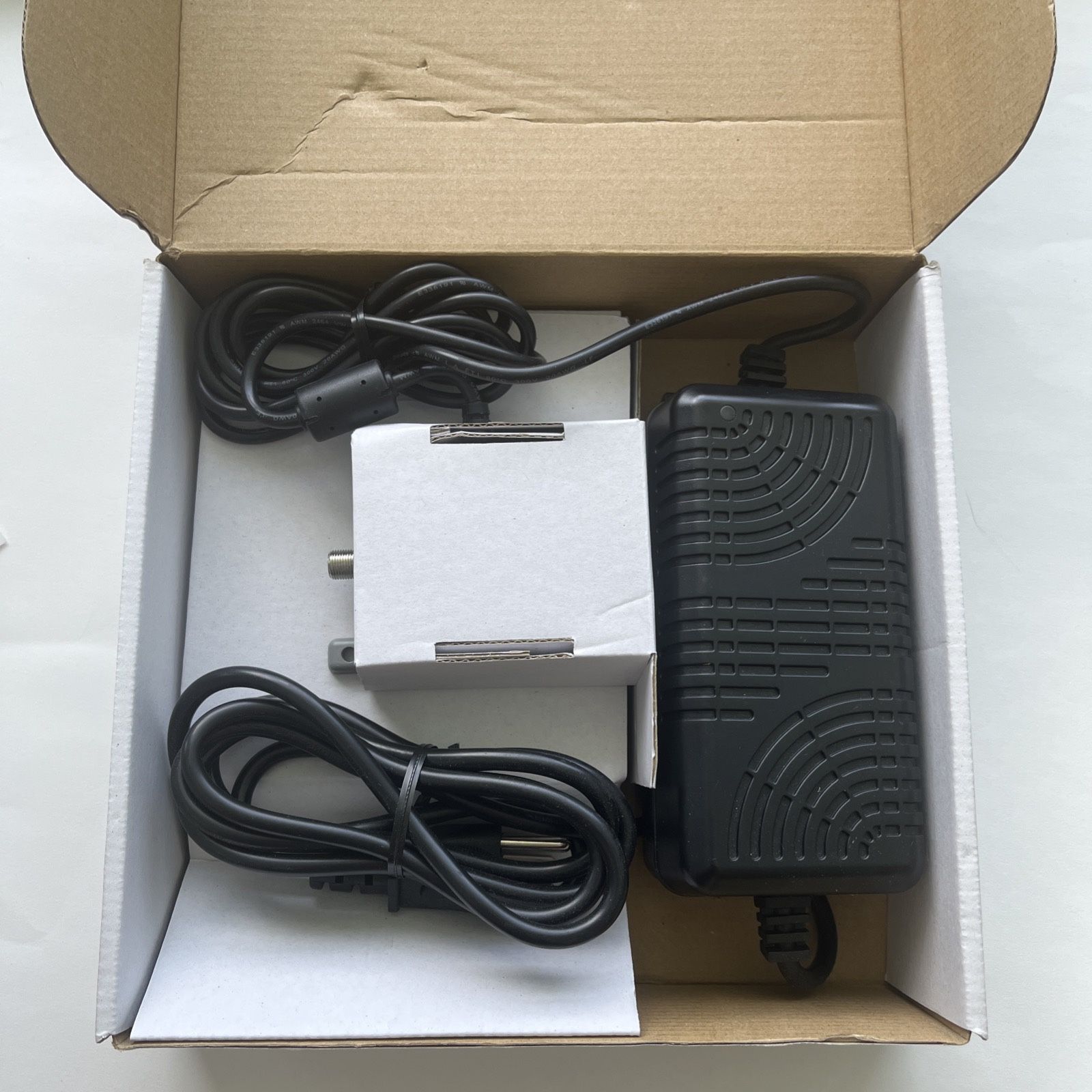 The DPH-42 Dish Pro Hybrid 42 Switch with Power Inserter and Power Supply is a unit from DISH Network designed for universal use. It includes 4 inputs and 2 outputs, along with features that enhance its functionality. The product comes with a 2-year manufacturer warranty and is made in China. The package includes one unit of the DPH42 POWER SUPPLY + INSERTER, providing reliable power distribution and input/output capabilities for satellite TV systems.