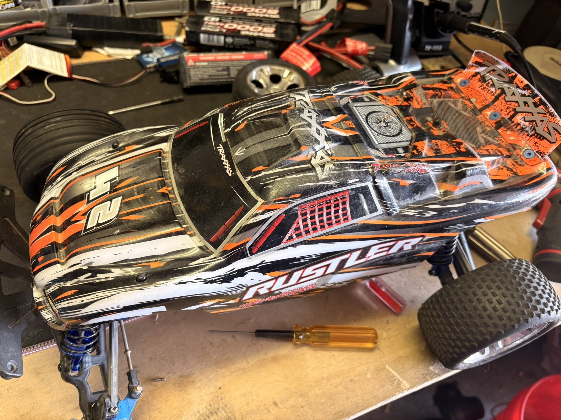 Traxxas rustler roller with upgraded parts. Great to build or use the parts on another car. No trades or delivery