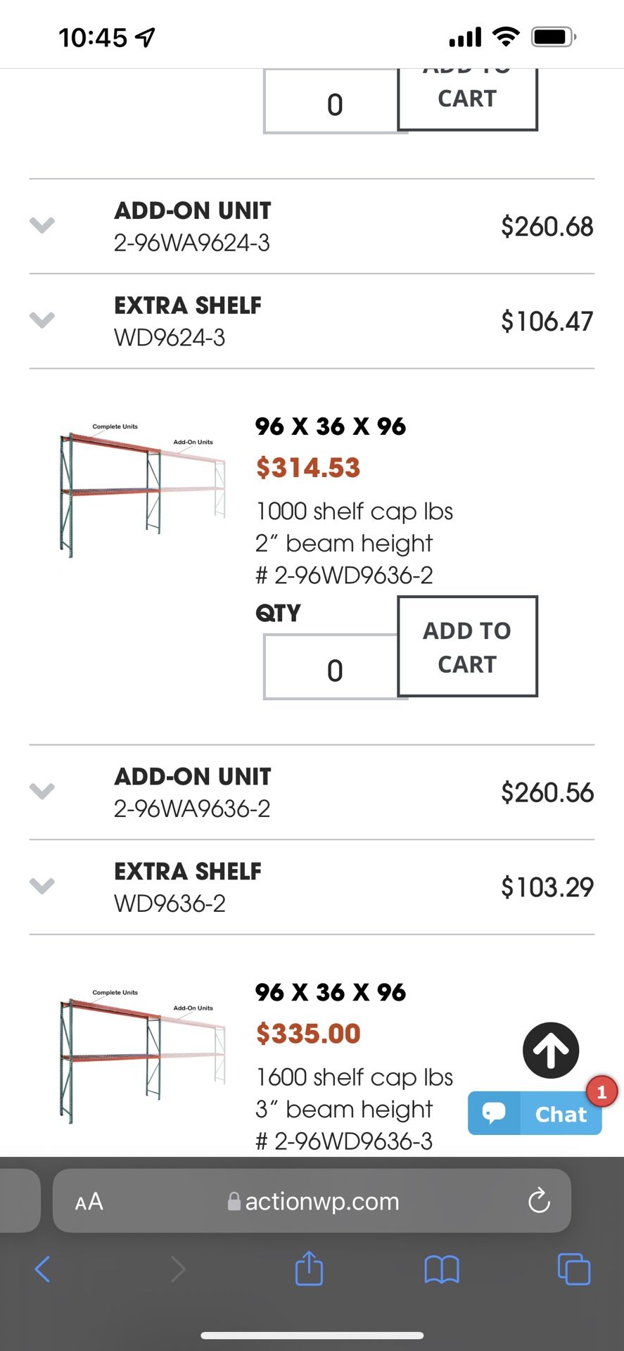 Used bulk rack in great condition. 96x36x96 with extra shelf. 4 units total