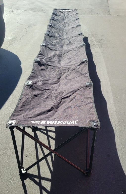 The 8 Seat Kwik Bench is a pop-up style bench that can be transported easily from field to field. The 8 Seat Kwik Bench features connected nylon seats with a collapsible steel frame