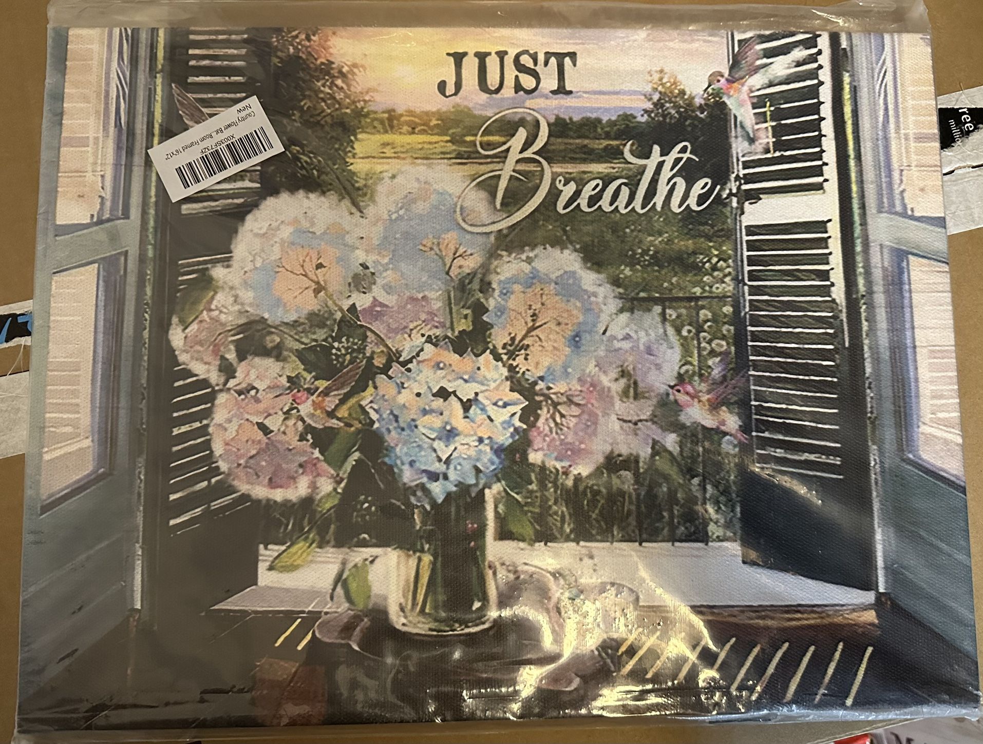 Country Flower Bathroom Wall Decor Just Breathe Wall Art Farmhouse Rustic Floral Hummingbird Pictures Canvas Painting Modern Artwork Home Decorations for Bedroom Office Living Room Framed 16"x12"