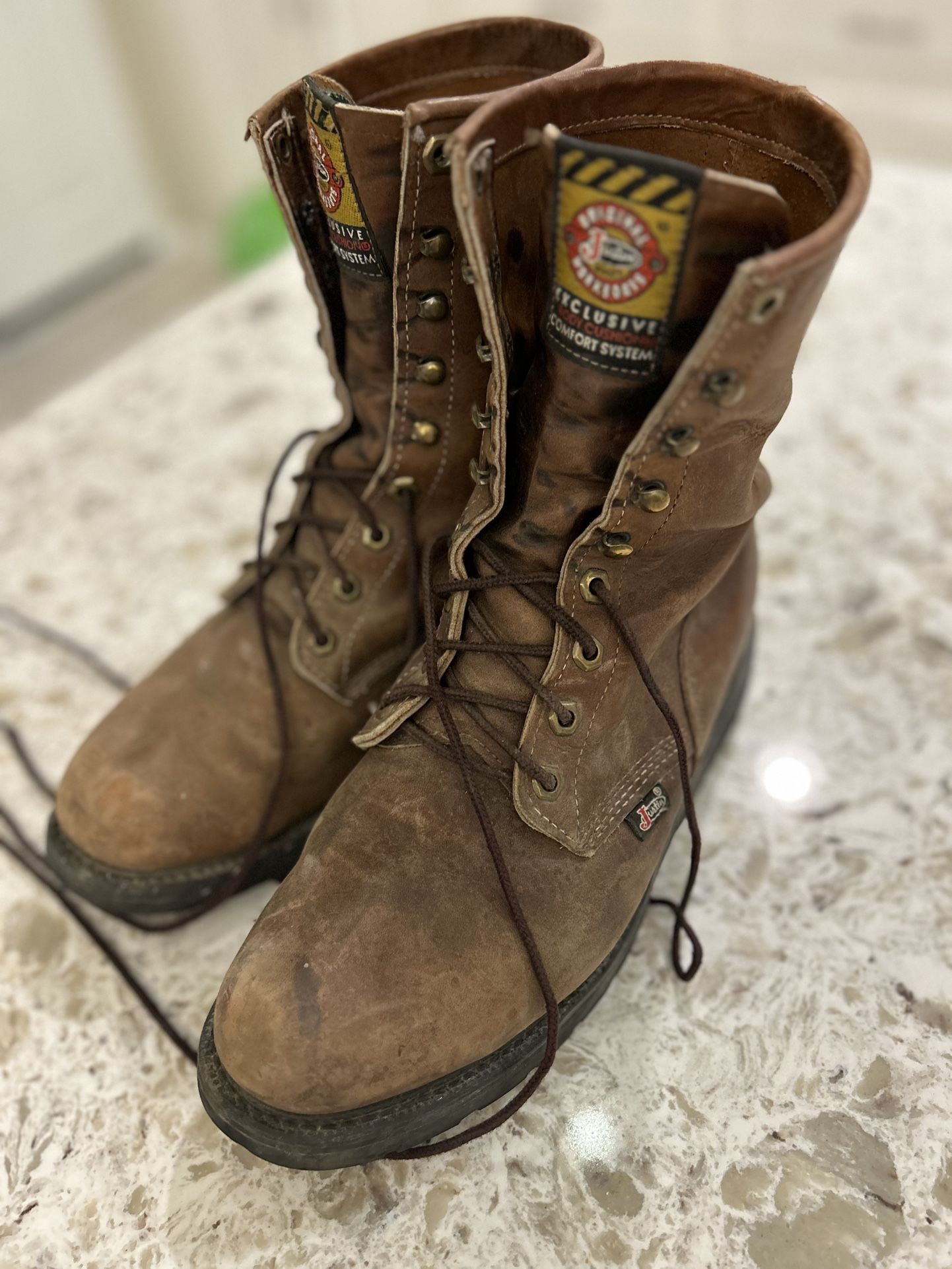 Justine works boots literally a month old not really my style got a new pair paid $267 for them come get them for $100 they will last you a lifetime super great work boots