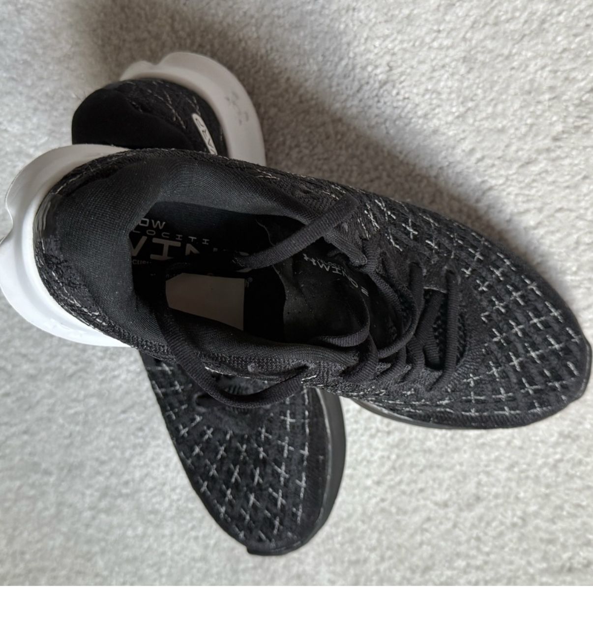 Under Armour Flow running shoes, size 9.5, in excellent condition. Color: Black with white sole. Very clean, lightly used, no stains or damage. Super lightweight, breathable, and comfortable for walking, running, or gym workouts. From a smoke-free, pet-free home. Pickup or shipping available.