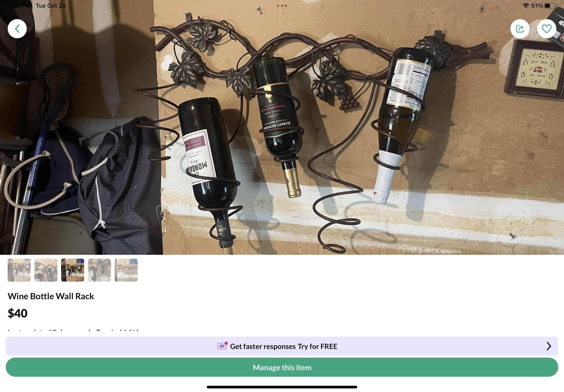 Pictures $40 Wine rack $40 Appetizer dish $30
