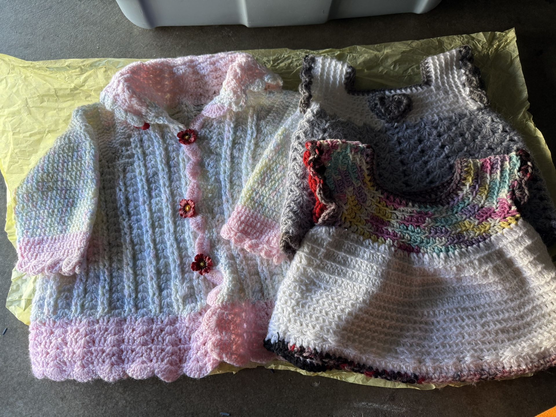 Set of handmade crochet baby clothes including a coat and dresses. Moving…Just $8/ each. $20/all. Still posted, still available. Please DONOT ask thi