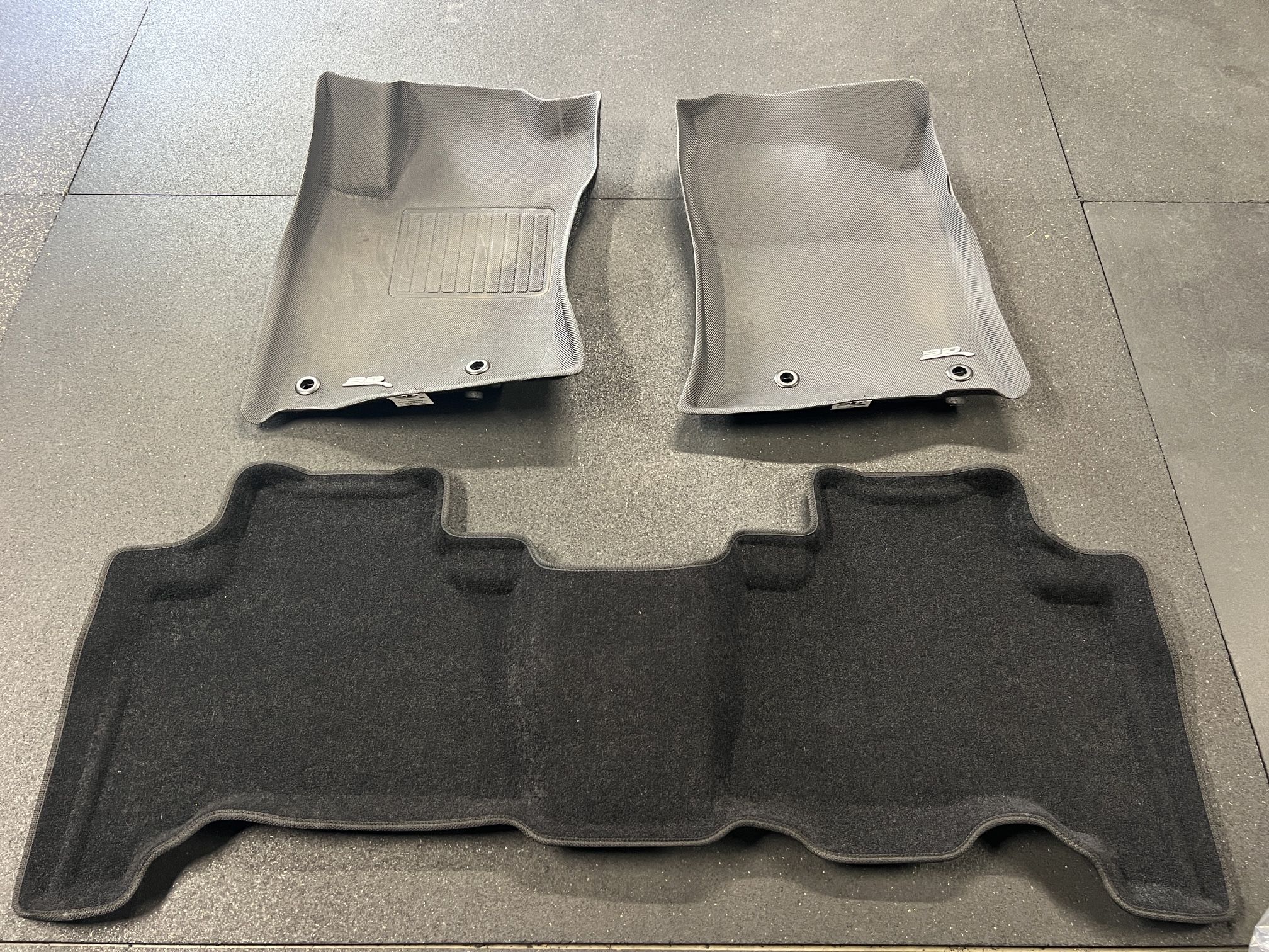 For a 5th gen 4runner or 2010-2023 lexus gx460 (non captains chair model) Just got new mats so these are for sale. The fronts are the 3d Kagu all weather perfect fit liners. easy to hose off to clean. Rears are the 3d elegant carpet liners