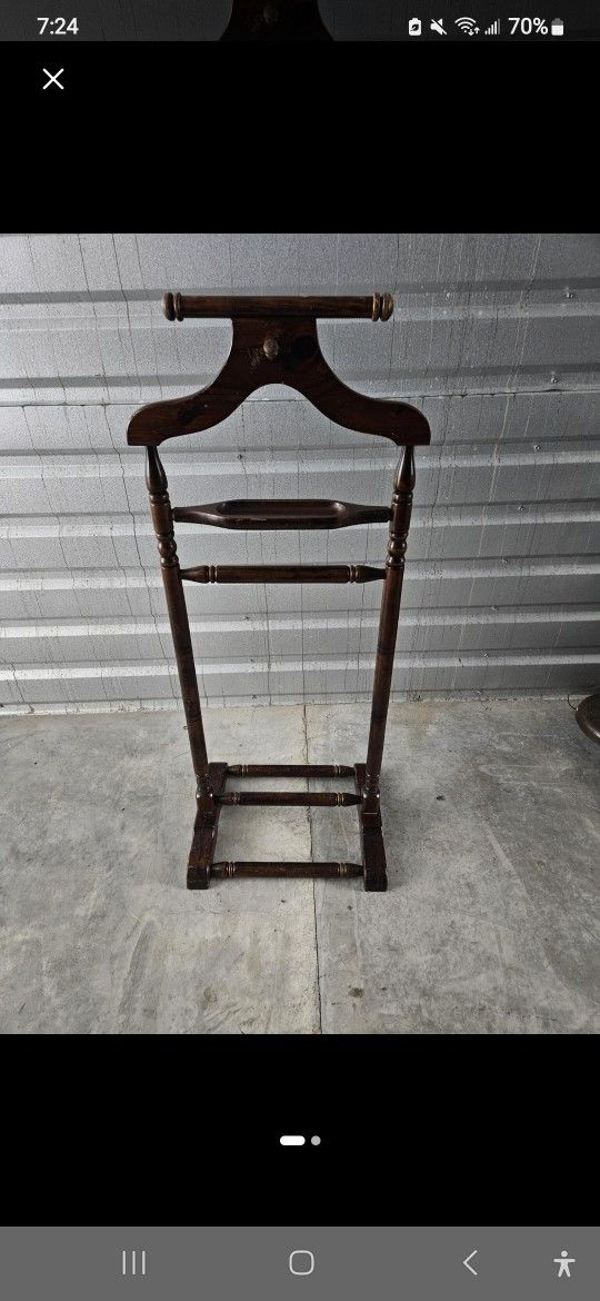 $75 *** CASH ONLY *** *** Item comes from a pet-free and smoke-free home *** Classic wooden valet, vintage, butler clothing stand; hanger rack A stunning addition to any home adds a pinch of old charm Some wear marks from the use and moving