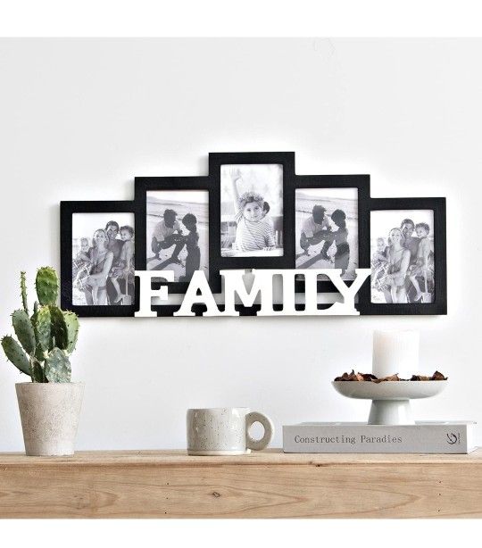 Retail $33.99 Wood Wall Hanging Family Picture Photo Frame Collage, 4 x 6 Photo Frames for Family Pictures Wall Decor, 5 Openings Black Dimensions In Photos