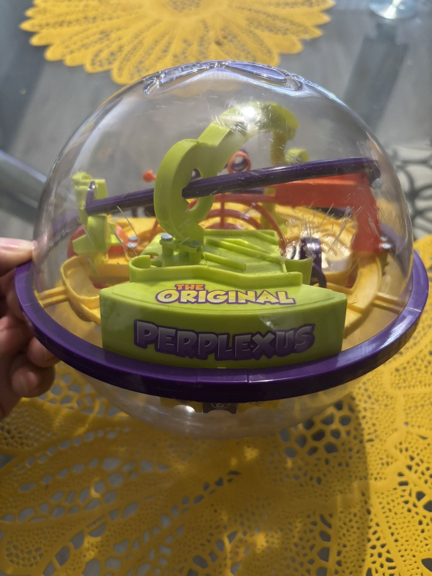 Hi I’m selling a: Perplexus Original 3D maze game. It is a puzzle enclosed in a transparent plastic sphere. Players maneuver a small steel ball through a complex maze along narrow plastic tracks by twisting and turning the sphere. The Original version features around 100 challenging obstacles, including a tight rope and super spiral. The game is easy to play but difficult to master.