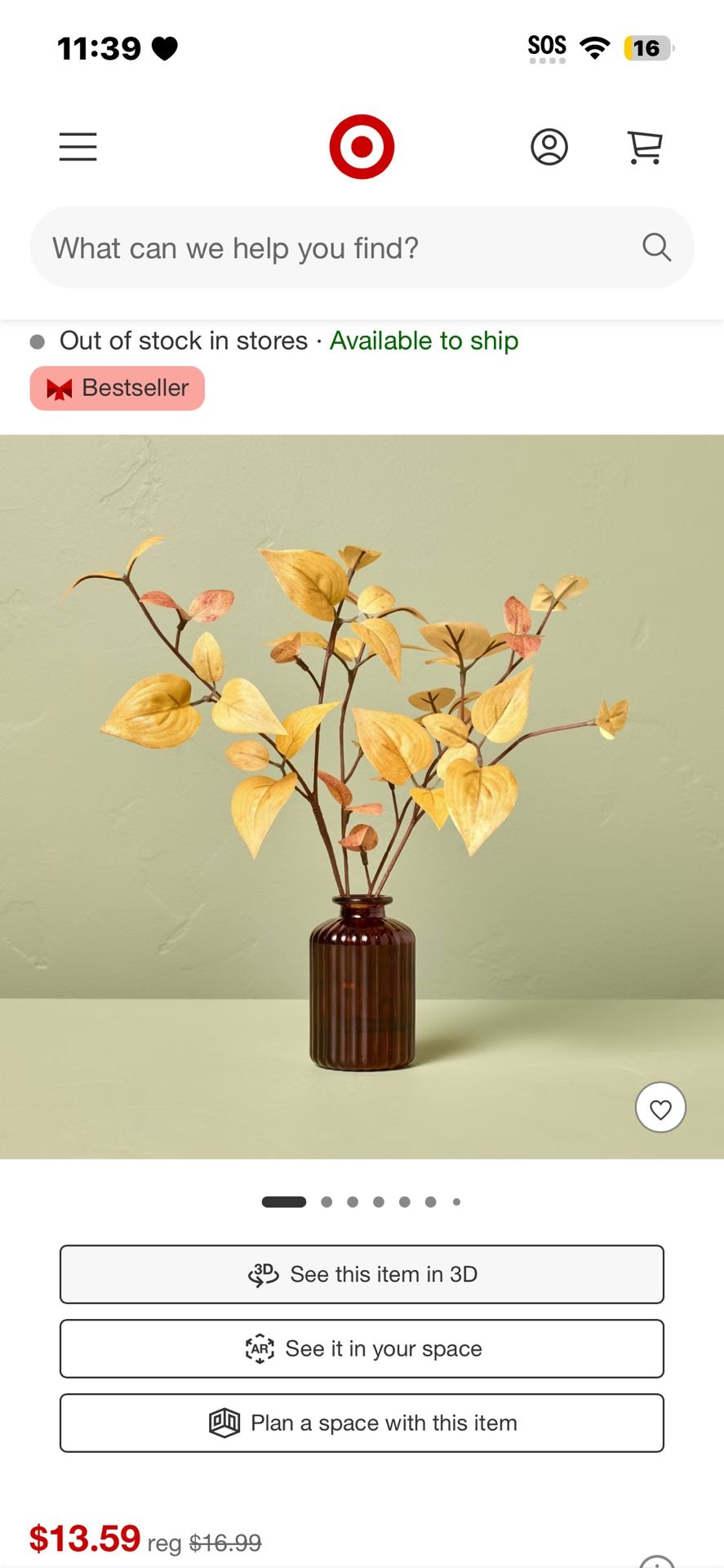 11” Arreglo Artificial Golden Dogwood – Hearth & Hand™ 🍁 Solo $3