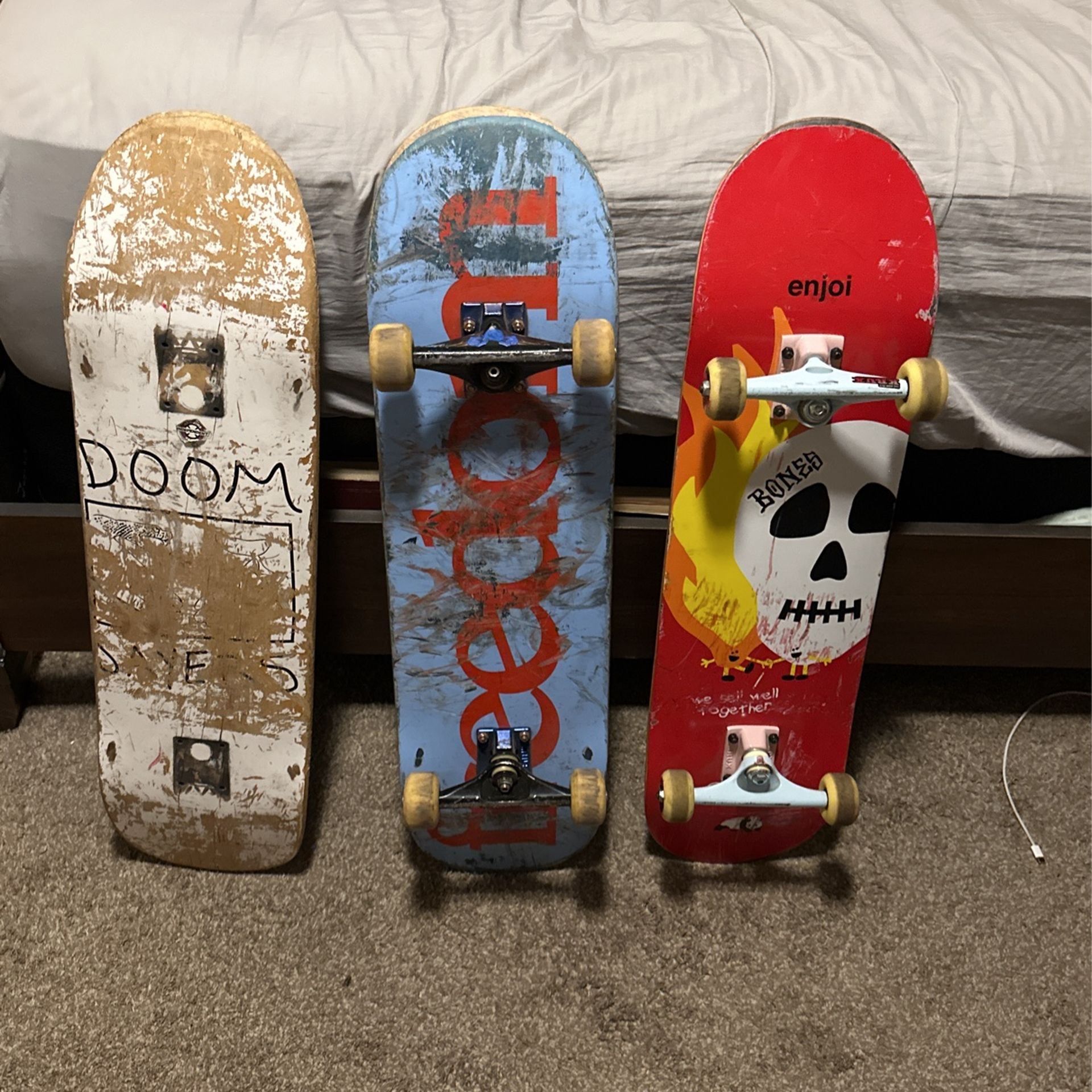 Freedom (40) Enjoi (70) 10 for the busted doom board Krux trucks Bones wheels 120 all