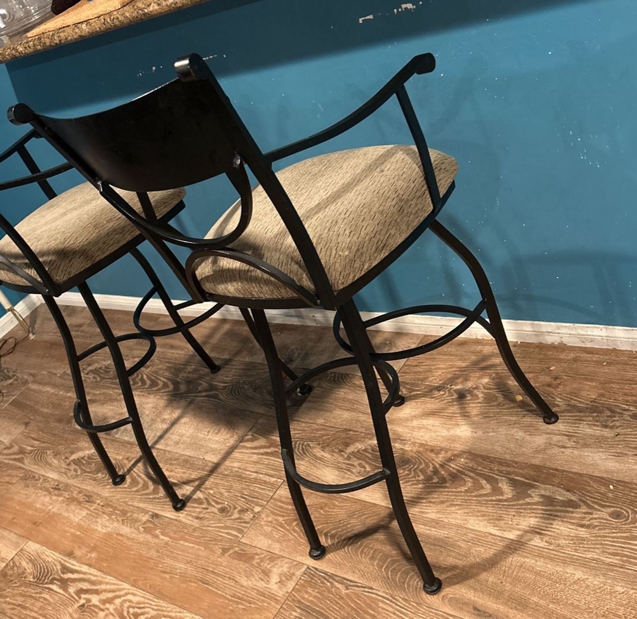 talk bar height chairs, metal style & turn. small stains that can be cleaned