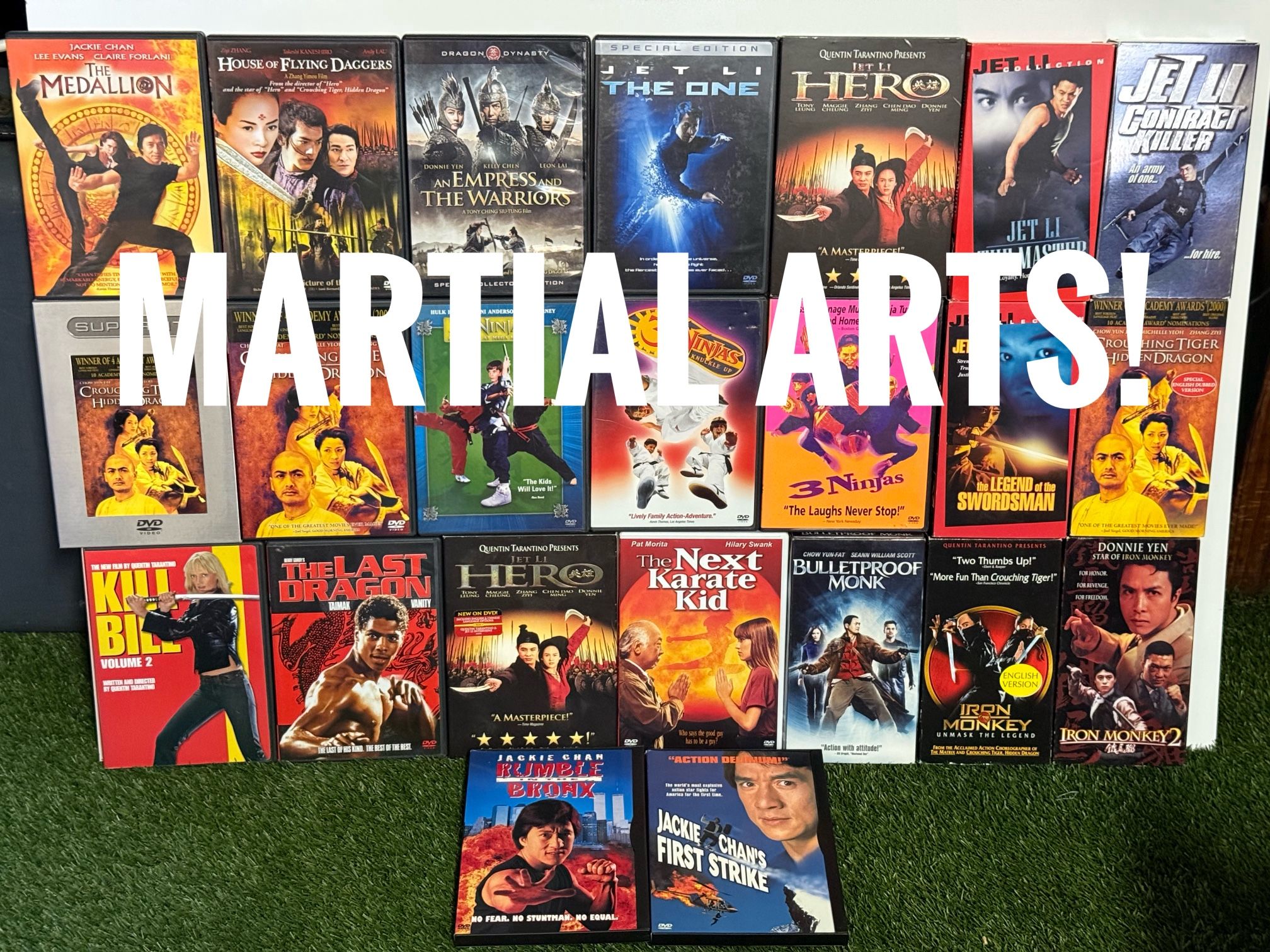 Send offers or trades! All in great shape, ready to go! Located in Vista, check out my other listings also! The medallion, house of flying daggers, and impress, and the Warriors, jet li The one, hero, the master, contract, killer, crouching, tiger, hidden dragon, three ninjas high noon at mega Mountain, three ninjas knuckle up, three ninjas, the legend of the swordsman, kill Bill, volume two, the last Dragon, the next karate kid, bulletproof, monk, iron monkey, iron monkey 2, Jackie Chan rumble in the Bronx, Jackie Chan’s first strike