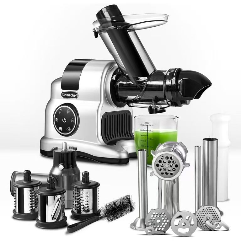 Masticating Juicer Machines, AMZCHEF 5 in 1 Slow Cold Press Juicer with Slicer/Shredder Attachment, Juice and Vegetable Extractor with Meat Grinder, S