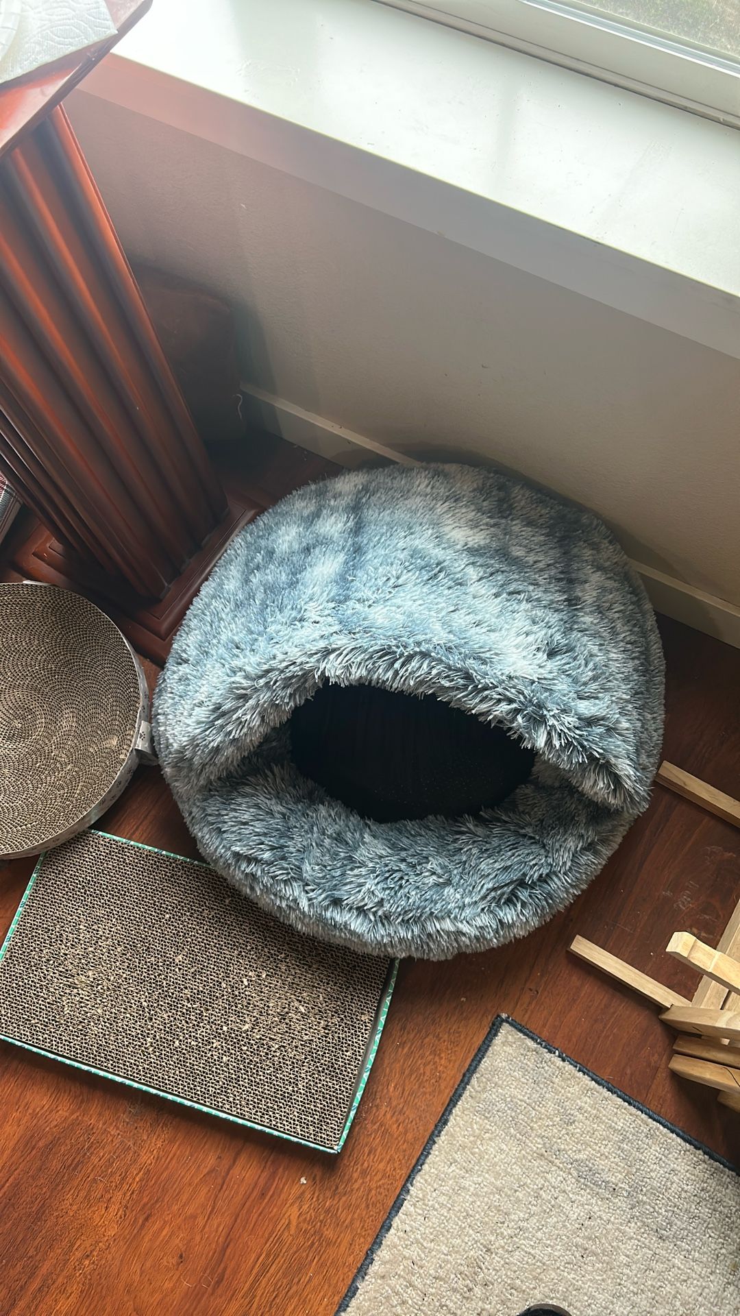 Warm & Fluffy Cat Hideaway Bed – Blue, Grey & White Tones