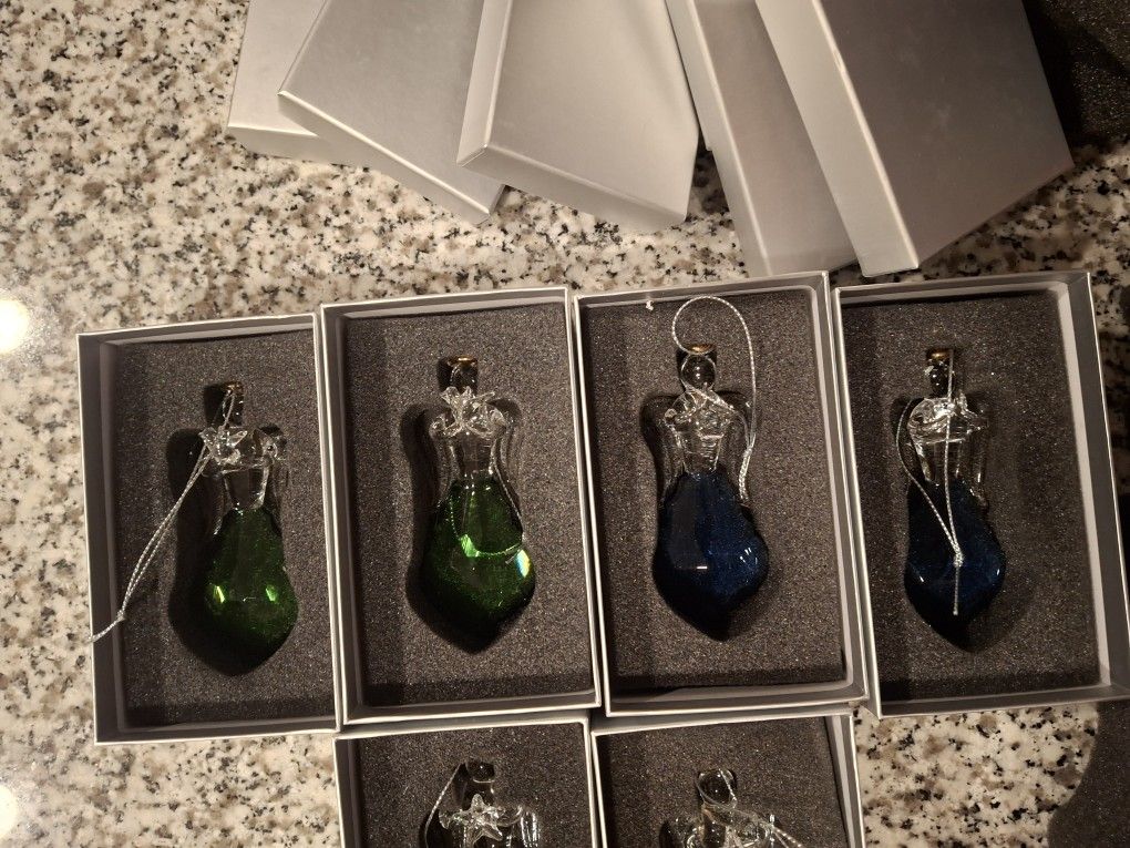 All come in a cushioned gift box. Really beautiful all made in glass with gold outline. Emerald, Crystal, blue topaz and amityste Angels come with hands holding star, dove, heart or hands in prayer $10 each. Give to teachers, grandchildren, grandparents, friends.