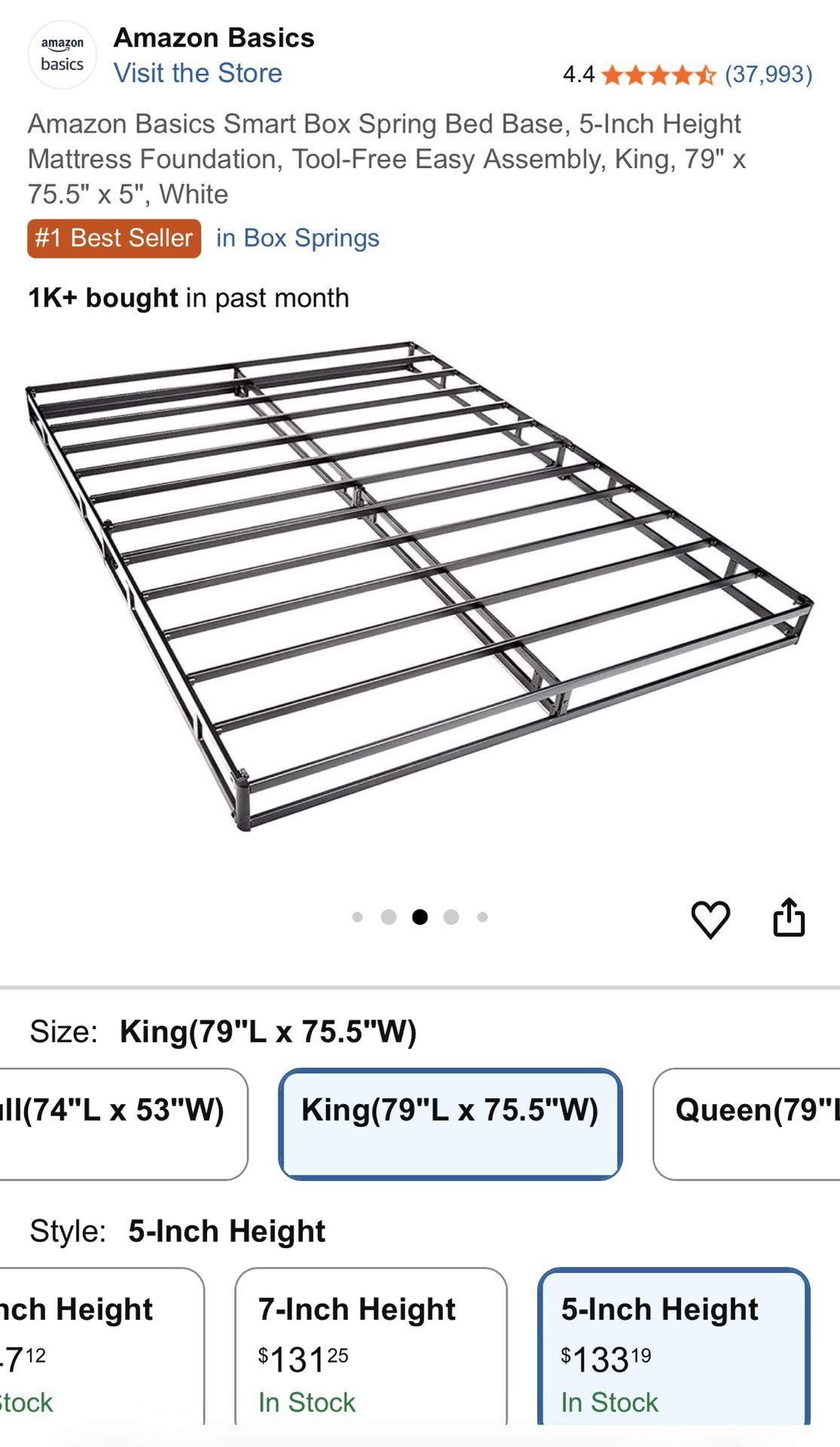 Amazon Basics Smart Box Spring Bed Base, 5-Inch Height Mattress Foundation, Tool-Free Easy Assembly, Measurements are in the picture