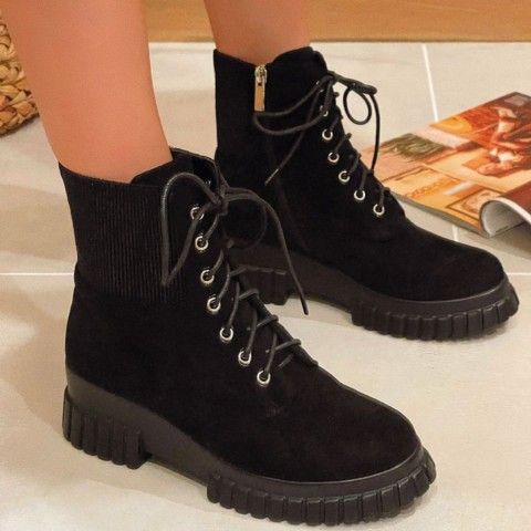 Sizes 7 ,7.5,8,8.5,9,10 ,11 Low Stock True to size PRICE FIRM NO HOLDS BOOT HEEL HEIGHT APPROX: 8" HEEL HEIGHT APPROX: 2" PLATFORM HEIGHT APPROX: .50" TRUE TO SIZE ALL MEASUREMENTS ARE MADE ON A SIZE 6 SHOE. THERE MAY BE SLIGHT MEASUREMENT VARIATIONS BASED ON SIZE. PRODUCT DETAILS PULL ON STYLING FRONT LACE.UP SLIGHT STRETCH CHUNKY HEEL BACK PULL TAB CLOSED ROUNDED TOE LIGHTLY PADDED INSOLE BLACK STRETCH KNIT ANKLE COMBAT BOOT