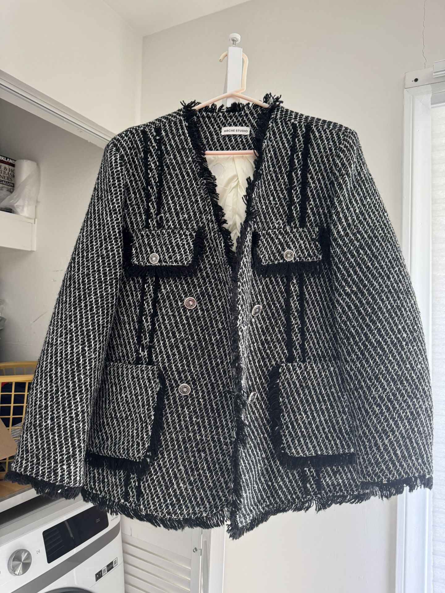 Women’s Tweed Quilted DOWN filling blazer jacket Size: M