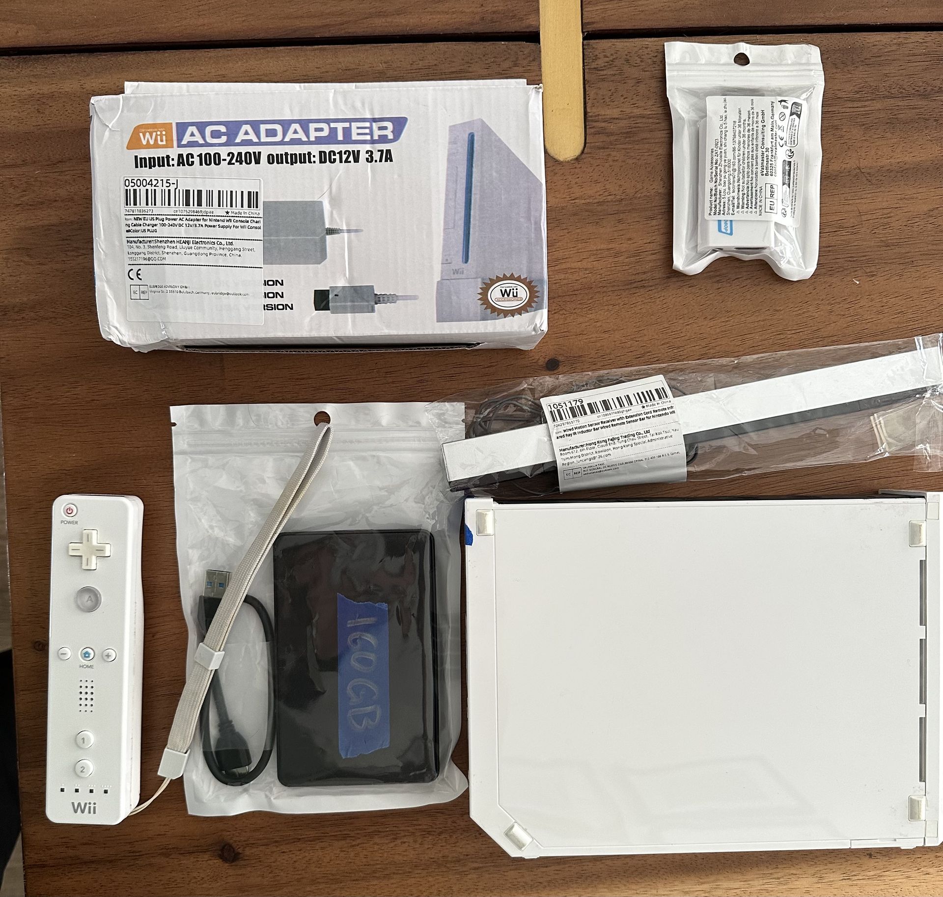 I CAN DELIVER SAME DAY! *or meet halfway if it’s far +GAMECUBE CONTROLLER PORTS (use original GameCube remotes for best functionality) Comes with: -Wii Console (no disc drive) -Hard drive -sd card -Wii mote -power supply -Sensor bar -HD upscaler Includes 40+ wii games 40+ GameCube games 50+ n64 games 30+Genesis games 40+ps1 games 100+ snes games 20+nes games 30+gb games 20+gbc games 100+gba games