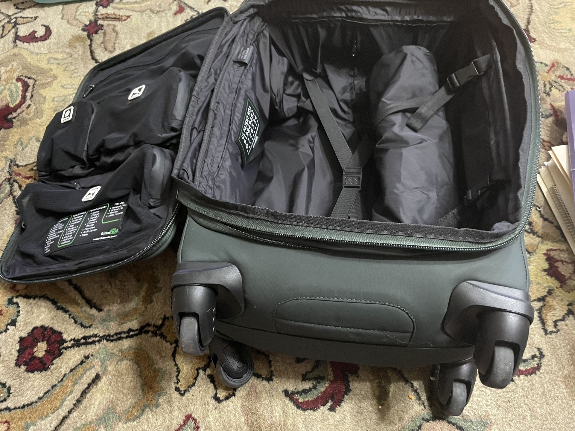 Like New! 4 Wheel Spinner Genius Pack Suitcase G4 22" H Carry On Spinner Luggage - Hunter Green. 14” W x 9” D expands additional 1.5”. Extreme organization. Very expensive Brand. Voted best Carry On Bag by Travel & Leisure and Fodors Travel Patented Laundry Compression Technology. Habla Espanol Maleta de cabina como nueva, cuatro ruedas