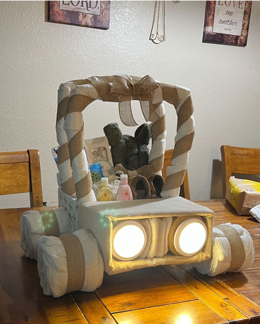 I make Custom-made diaper cakes mainly as a hobby prices are very low and if you’re willing to contribute to the items or decor that come with the diaper cake, they come even cheaper🥰 for instance this girl paid for the receiving blankets brought them to me and I only charged her $40 basically did the work for free only because I love doing it so much it takes my mind off of things and I am able to express myself through diaper cake art🫠🤍🙏