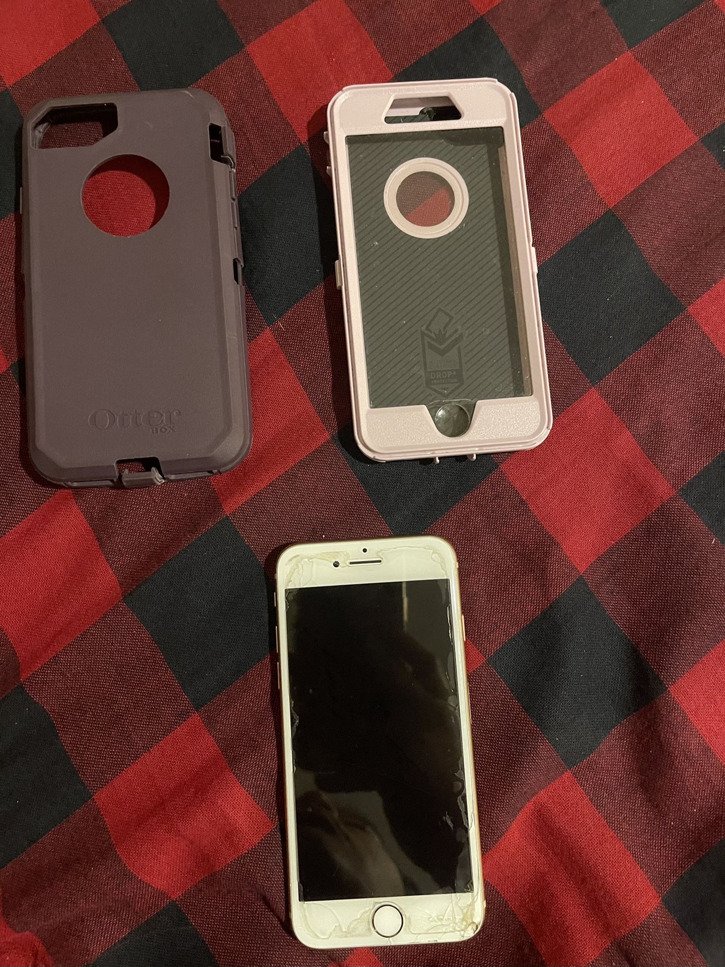 Rose gold iPhone 8. Small crack in front corner and back. Has a glass screen protector! Comes with an otterbox defender case!